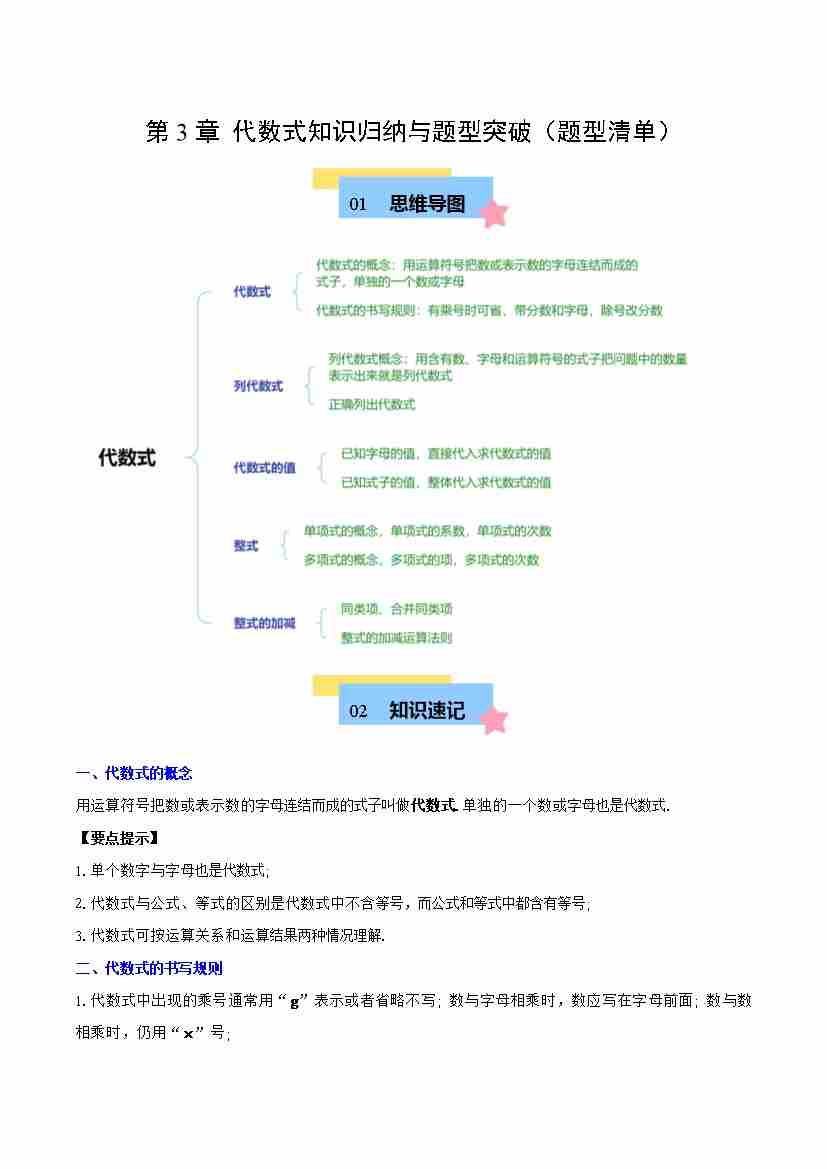 第3章 代数式知识归纳与题型突破(单元复习 13类题型清单)(原卷版)