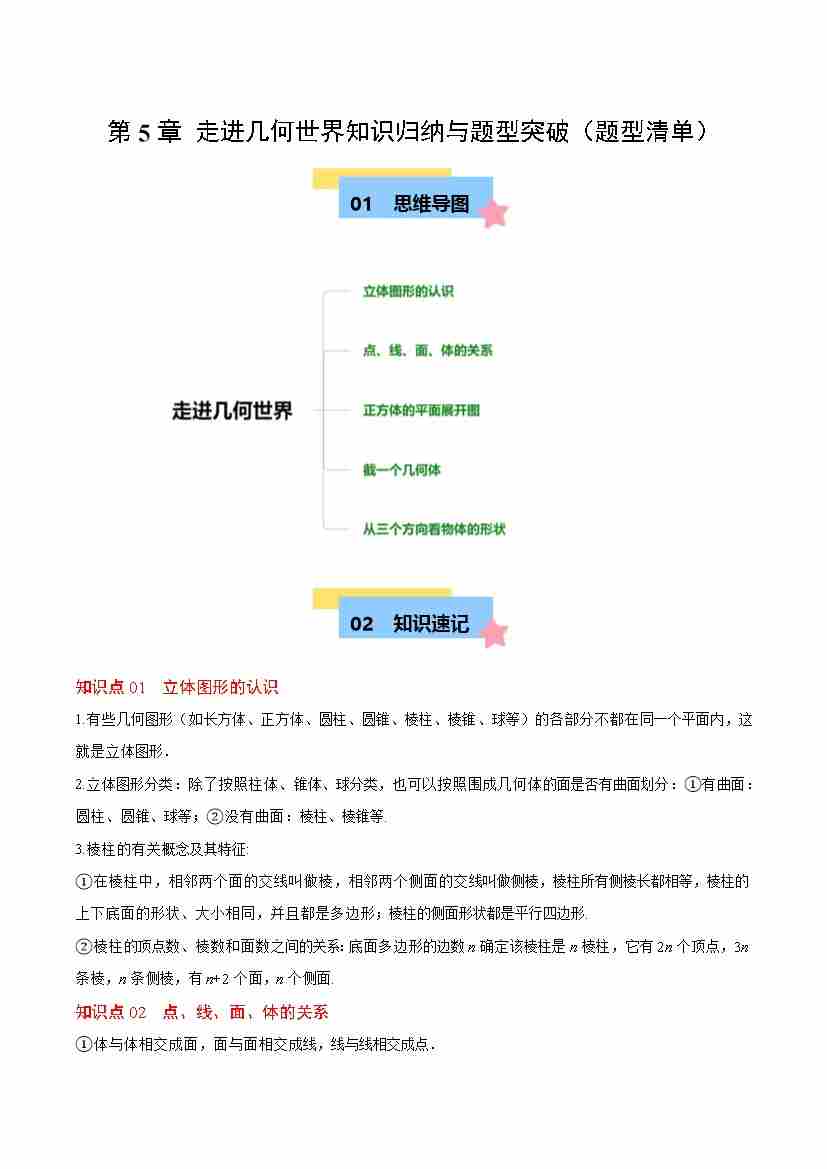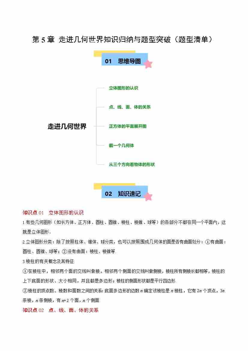 第5章 走进几何世界知识归纳与题型突破(单元复习 9类题型清单)(原卷版)