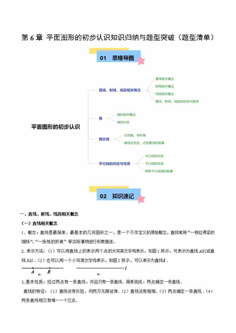 第6章 平面图形的初步认识知识归纳与题型突破(单元复习 15类题型清单)(原卷版)