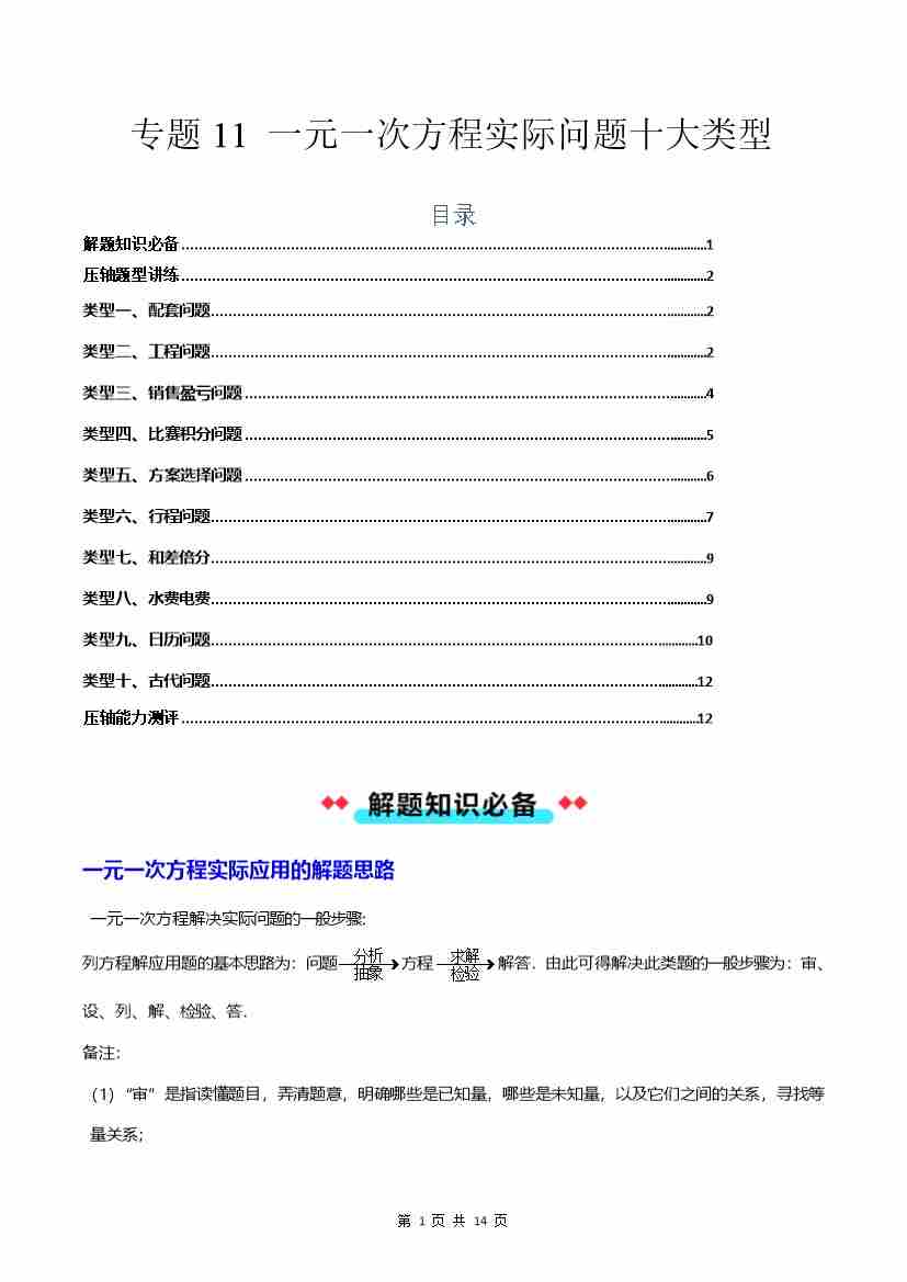 专题11 一元一次方程实际问题十大类型-解析版