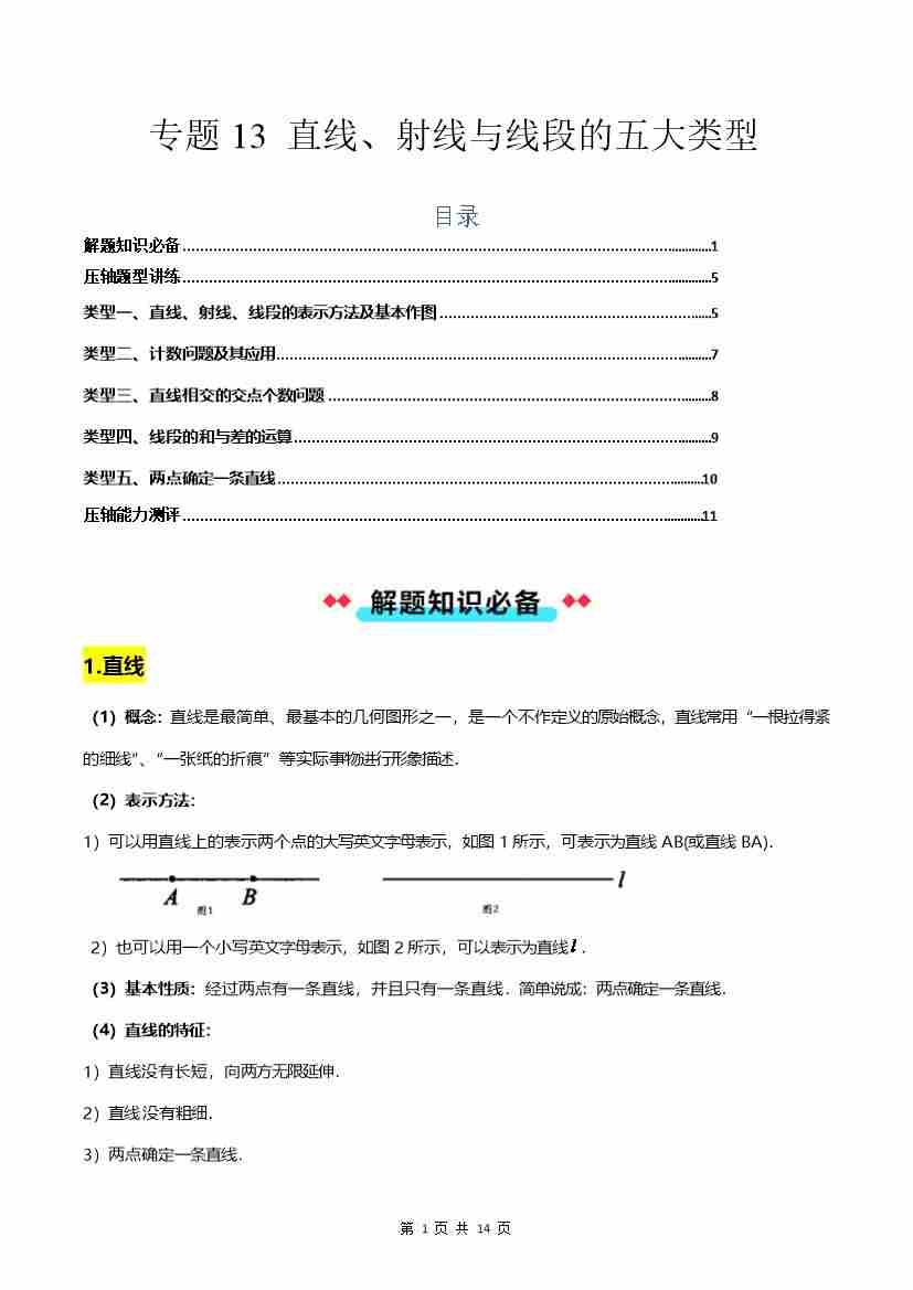 专题13 直线、射线与线段的五大类型-原卷版