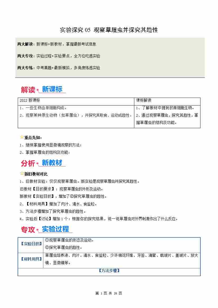 实验探究05 观察草履虫并探究其趋性(原卷版)