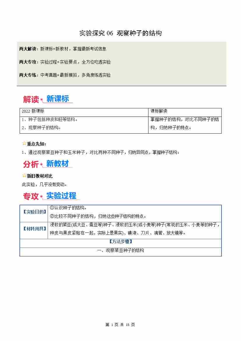 实验探究06 观察种子的结构(原卷版)