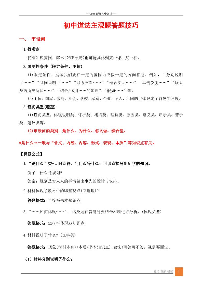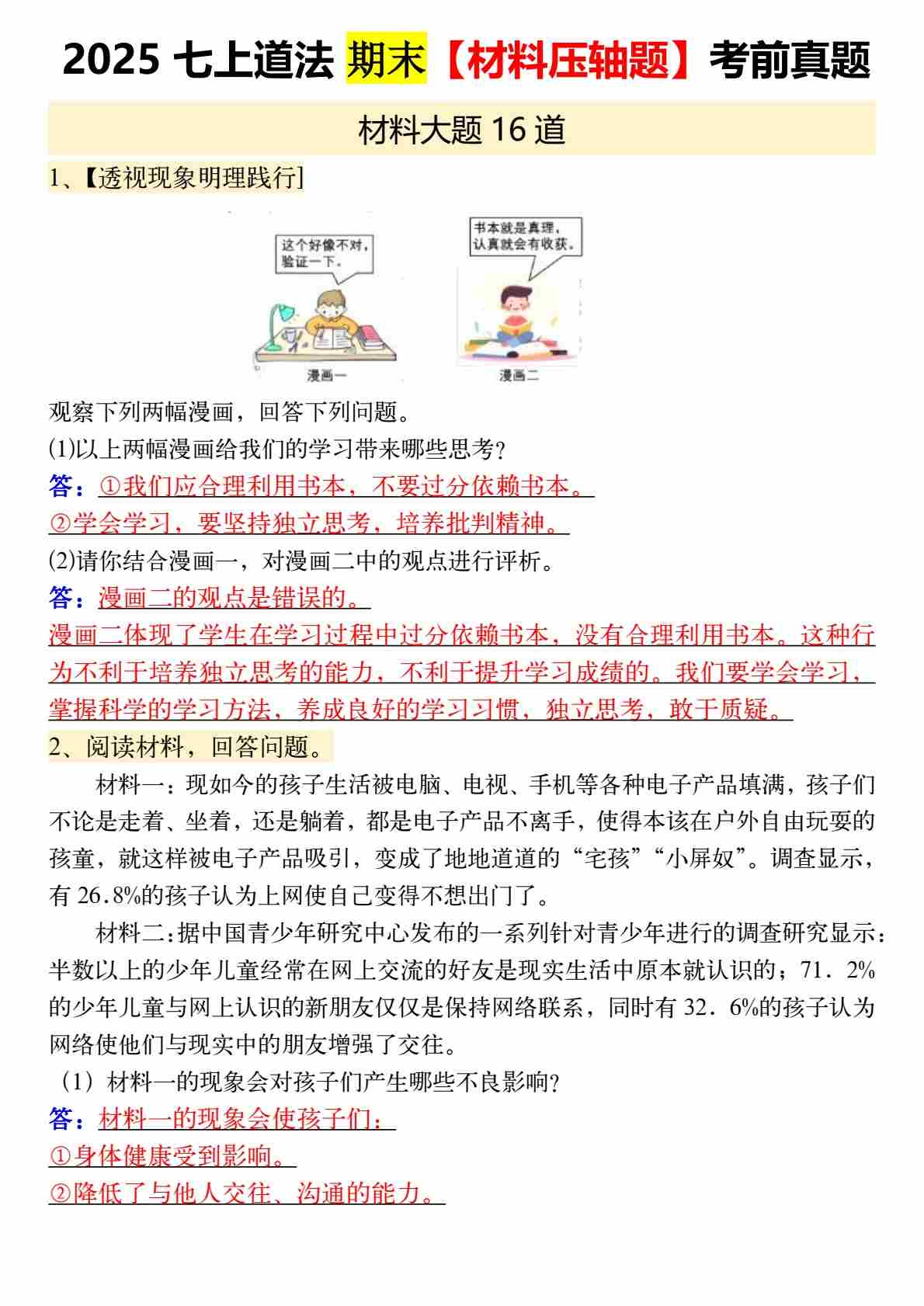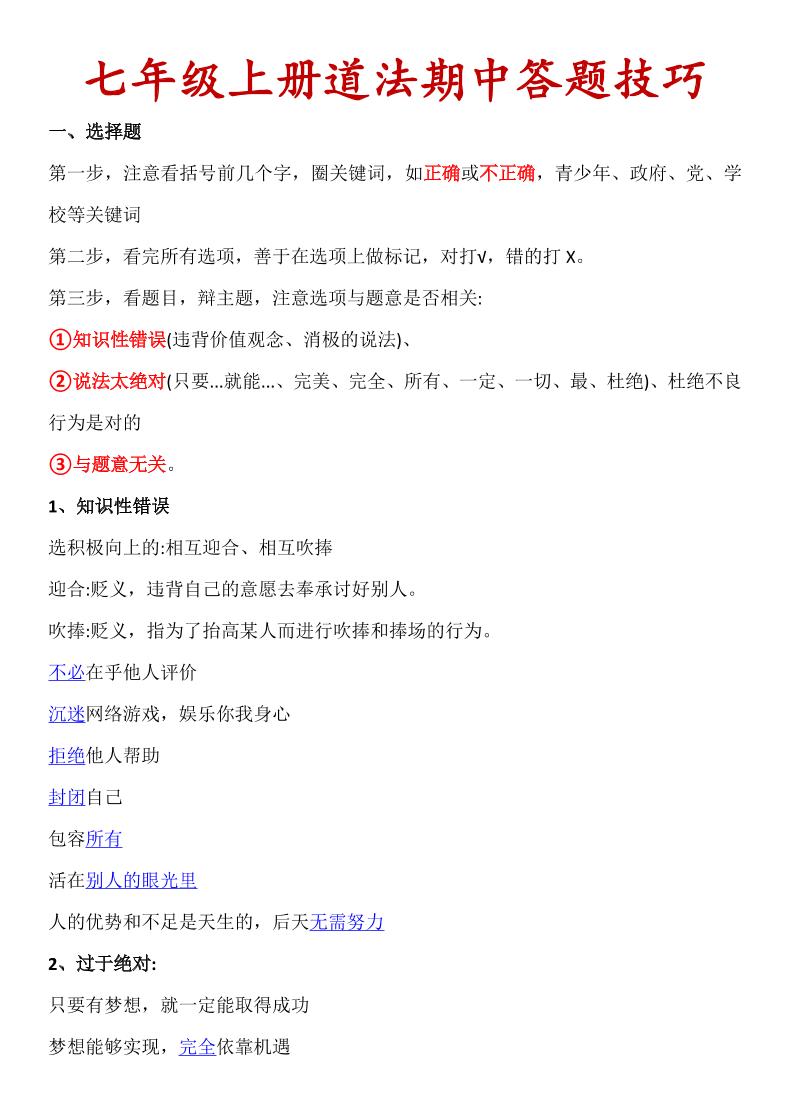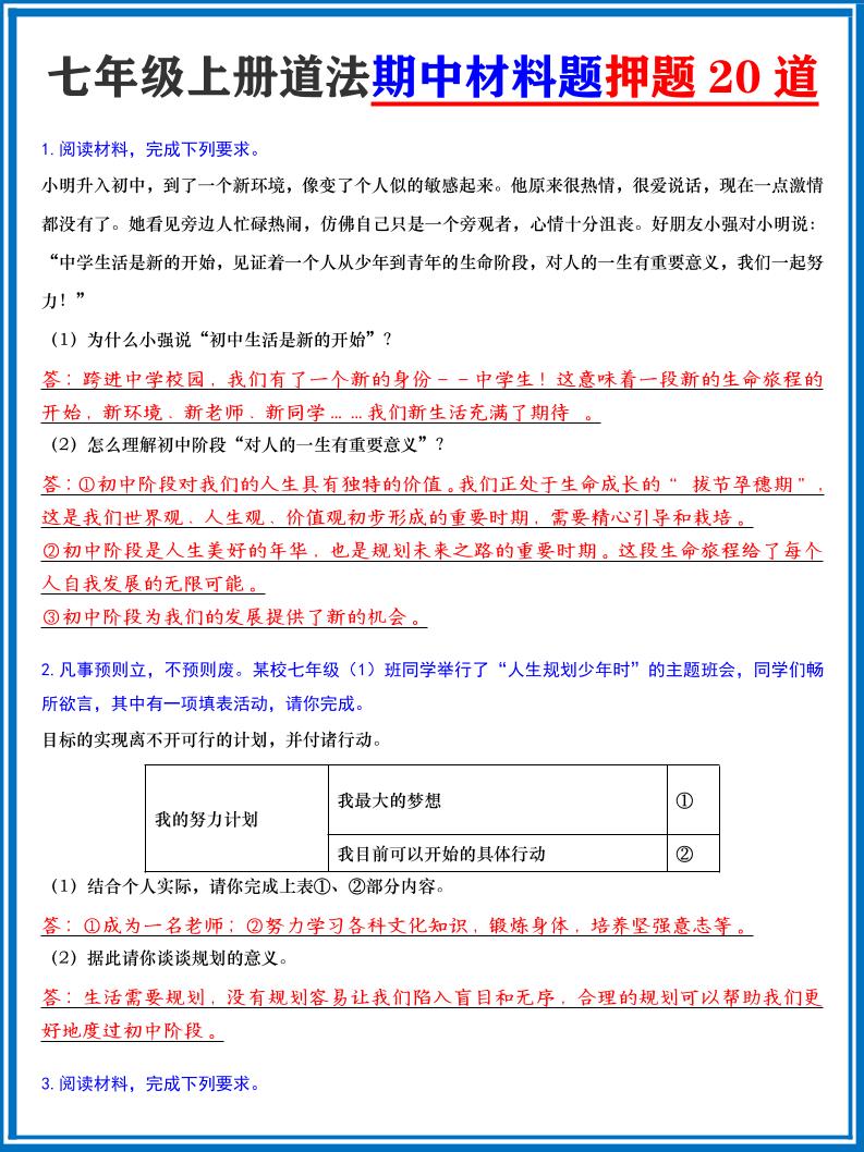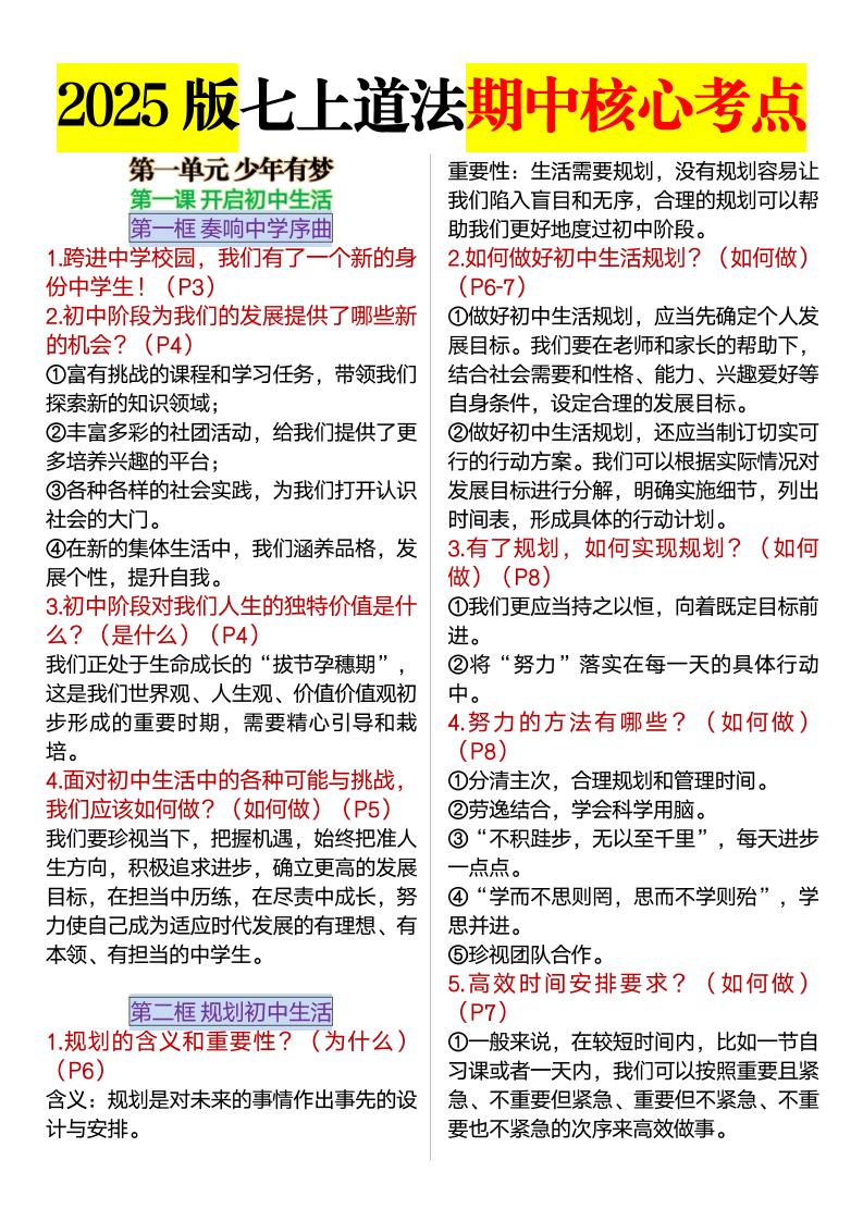 七年级上册道德与法治(新版)知识点提纲(答案)