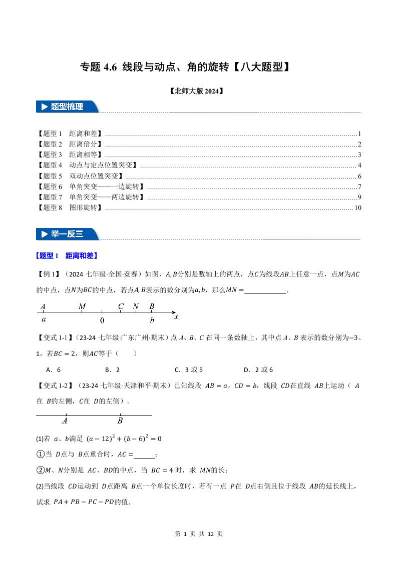 专题4.6 线段与动点、角的旋转【八大题型】(原卷版)
