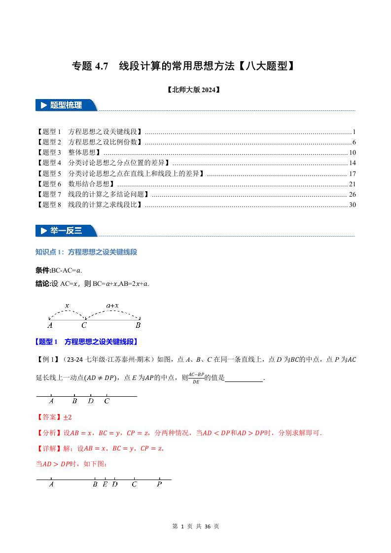 专题4.7 线段计算的常用思想方法【八大题型】(解析版)
