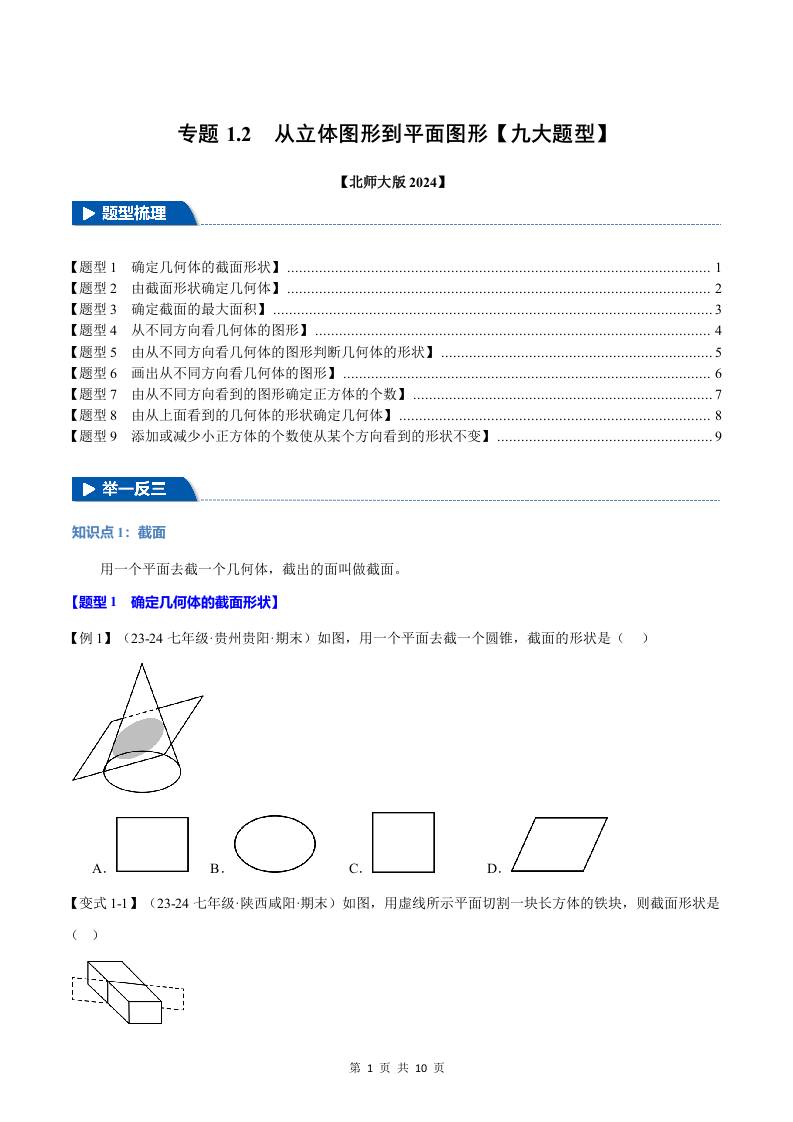 专题1.2 从立体图形到平面图形【九大题型】(解析版)