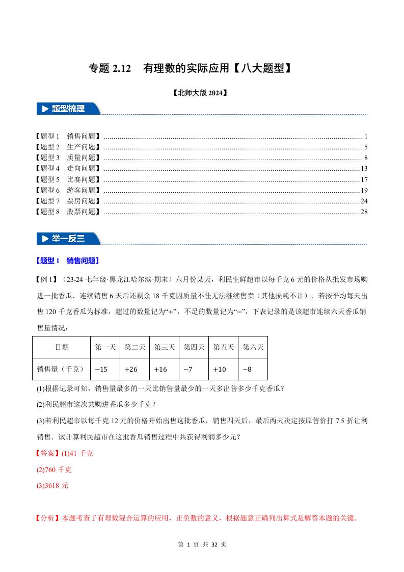 专题2.12 有理数的实际应用【八大题型】(解析版)