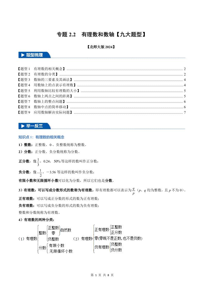专题2.2 有理数和数轴【九大题型】(原卷版)