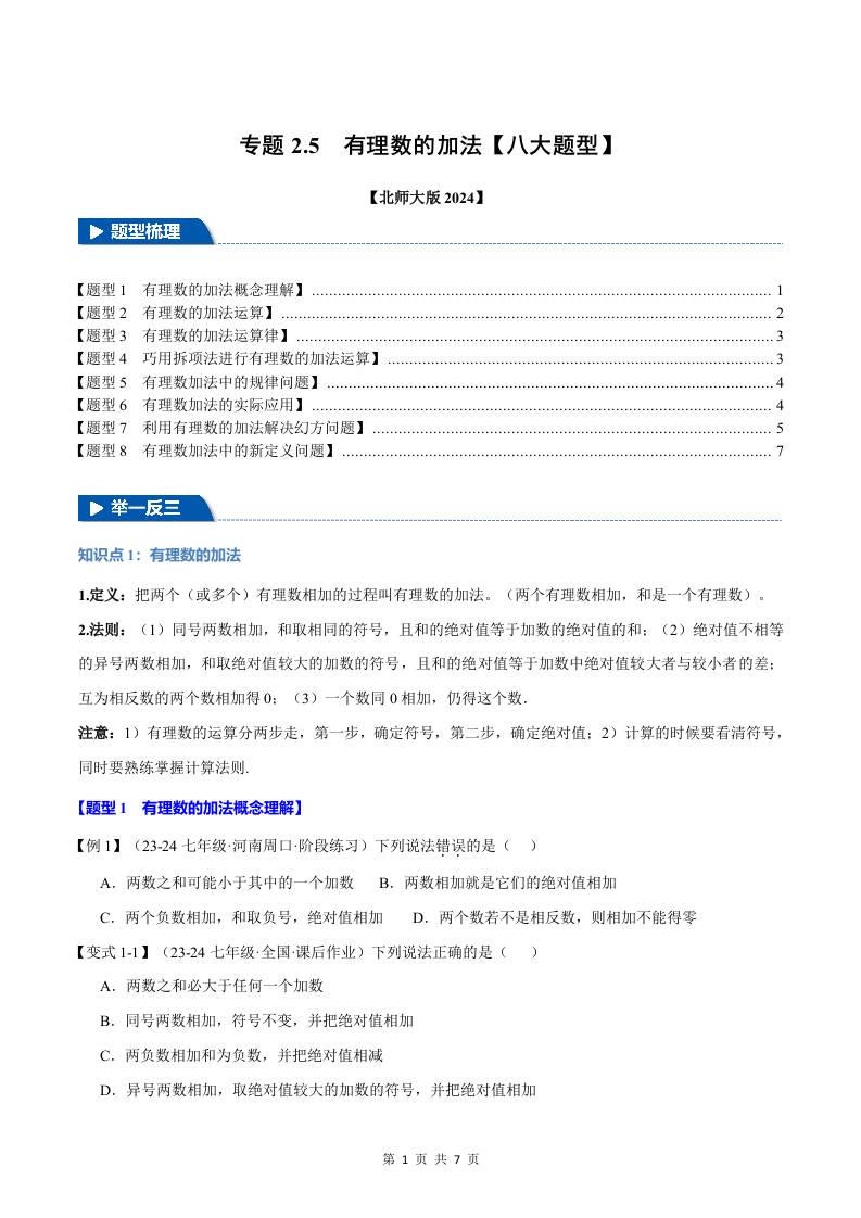 专题2.5 有理数的加法【八大题型】(原卷版)