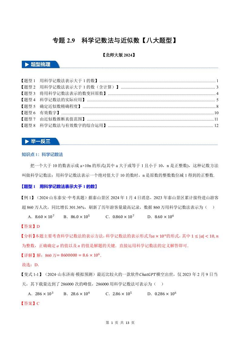 专题2.9 科学记数法与近似数【八大题型】(解析版)