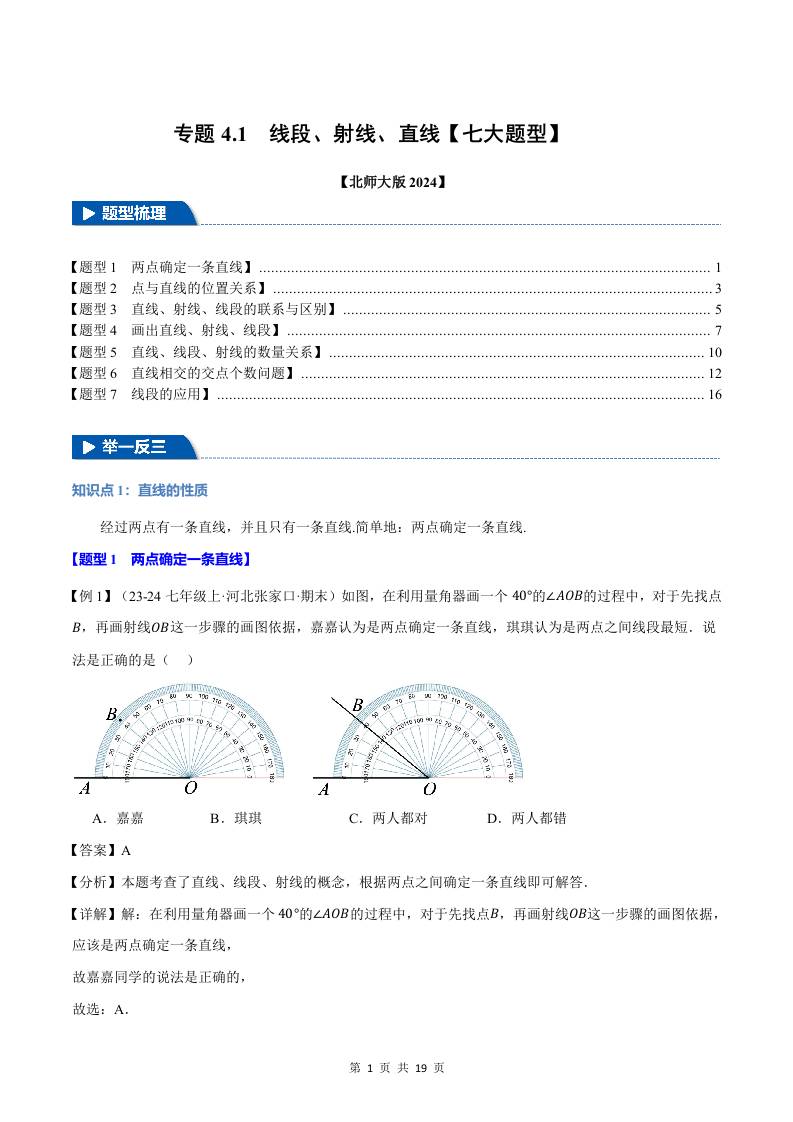 专题4.1 线段、射线、直线【七大题型】(解析版)