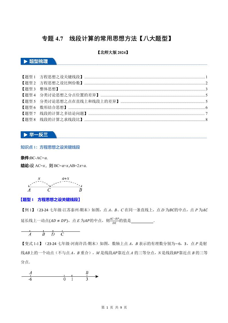 专题4.7 线段计算的常用思想方法【八大题型】(原卷版)