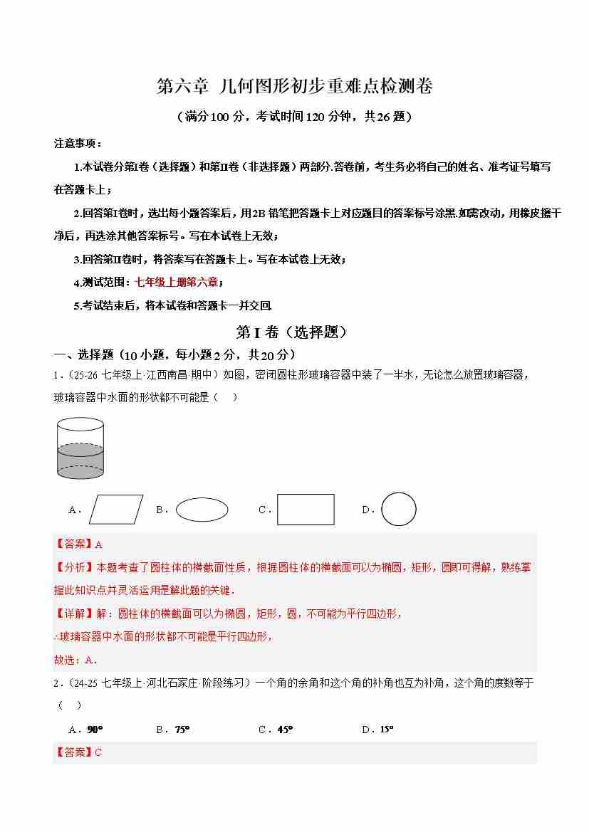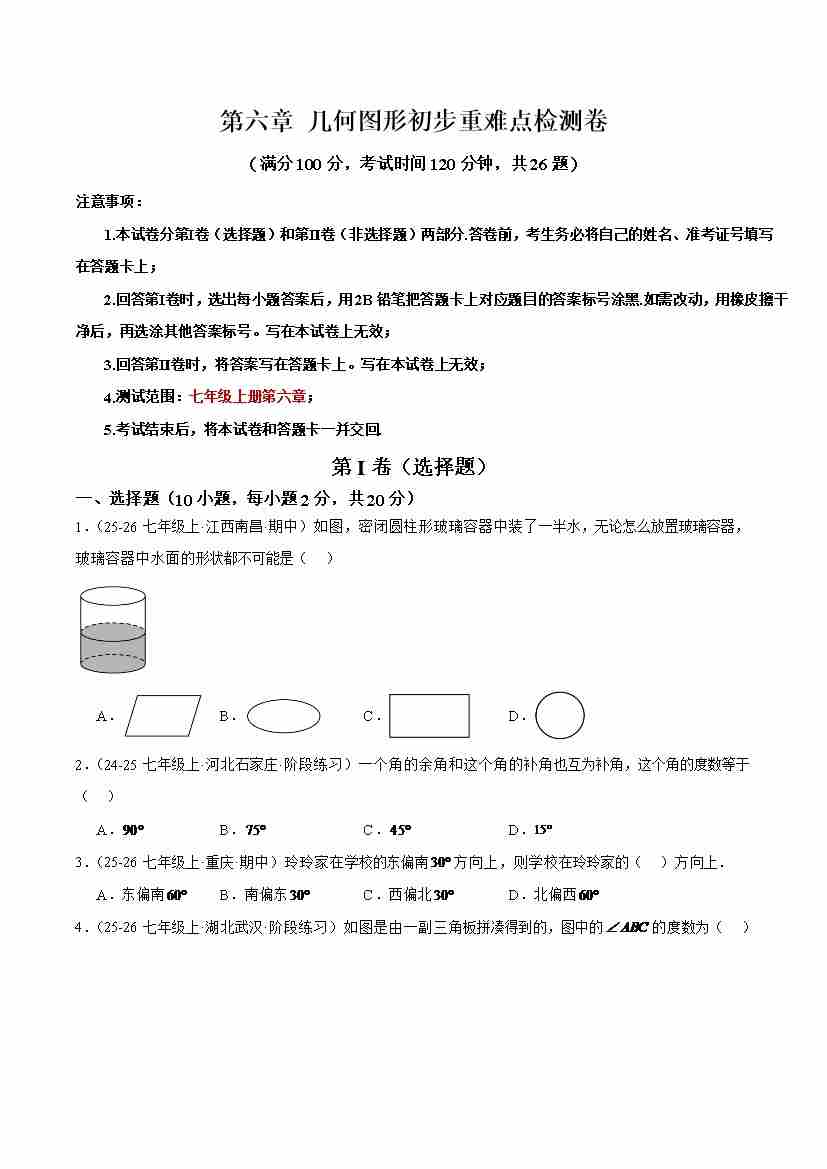 第六章 几何图形初步重难点检测卷(学生版)