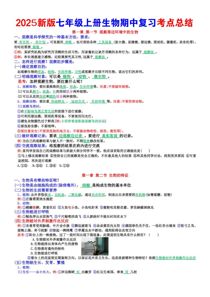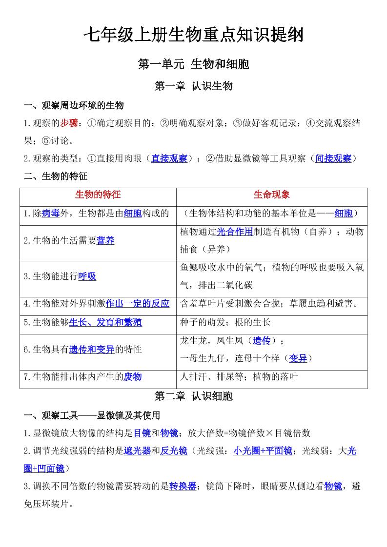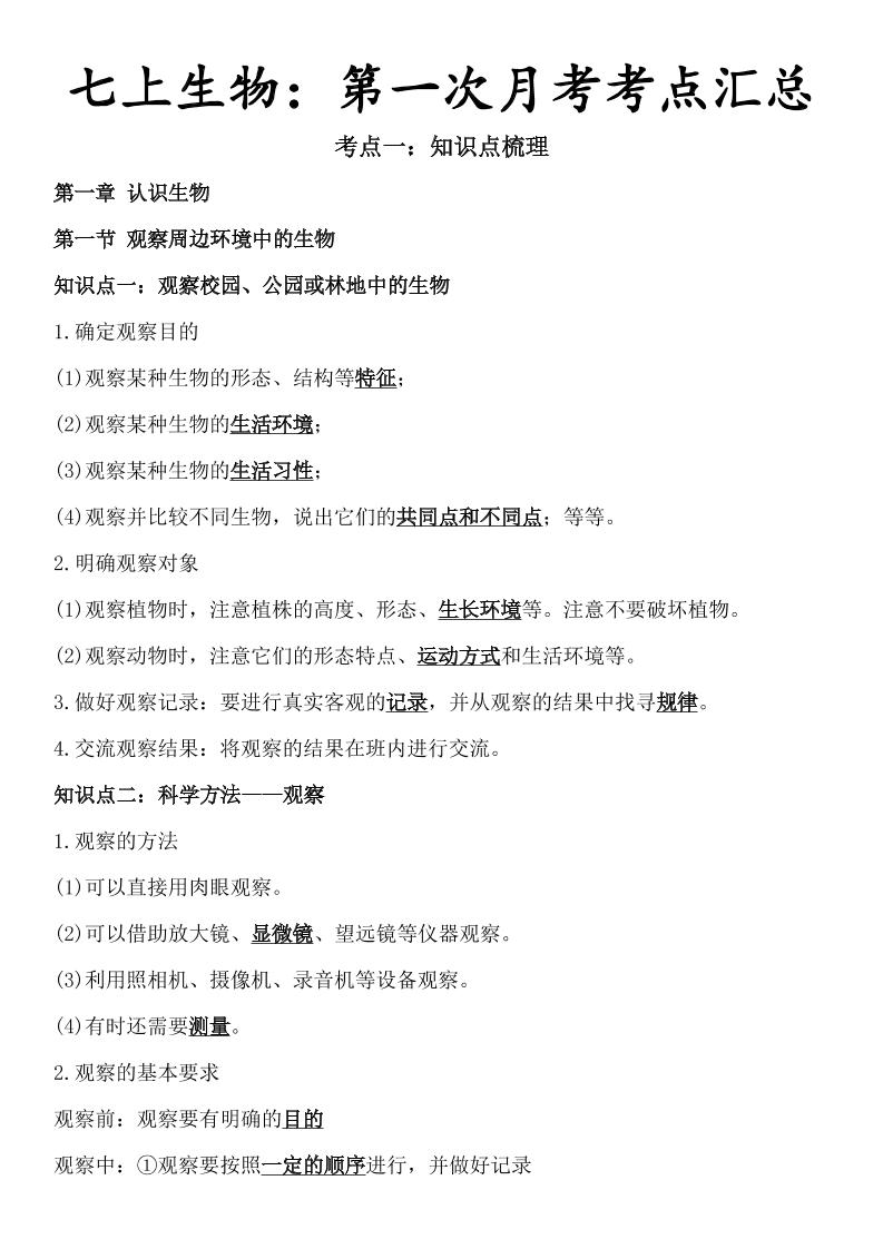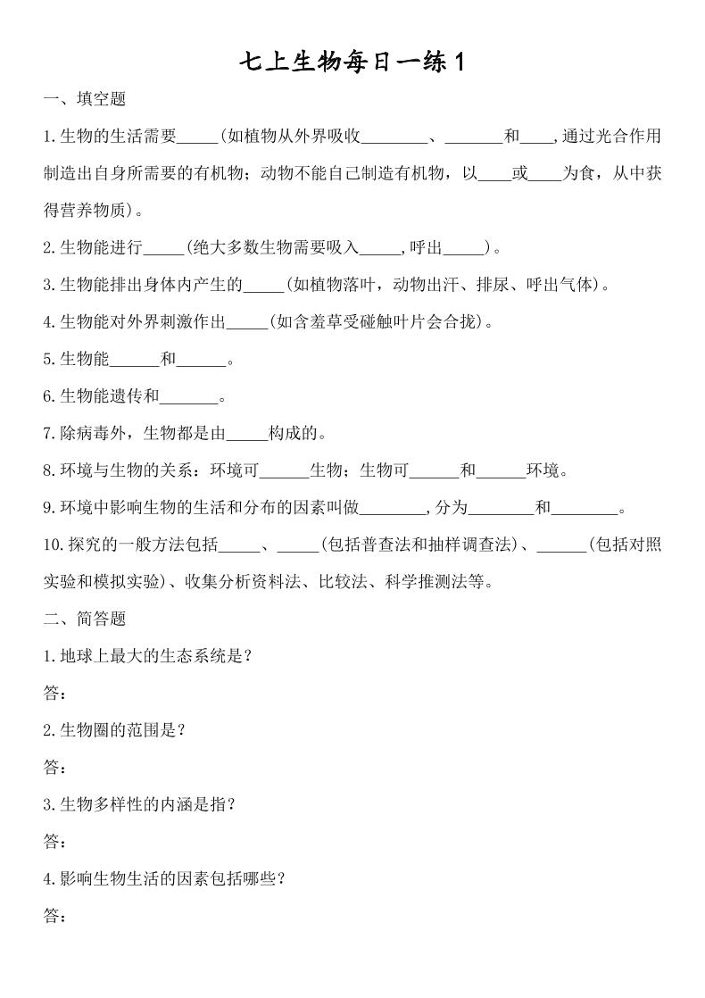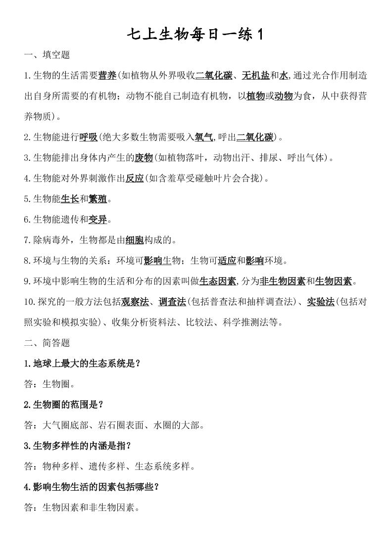 小升初暑假|七上生物早背晚默小纸条(人教版)