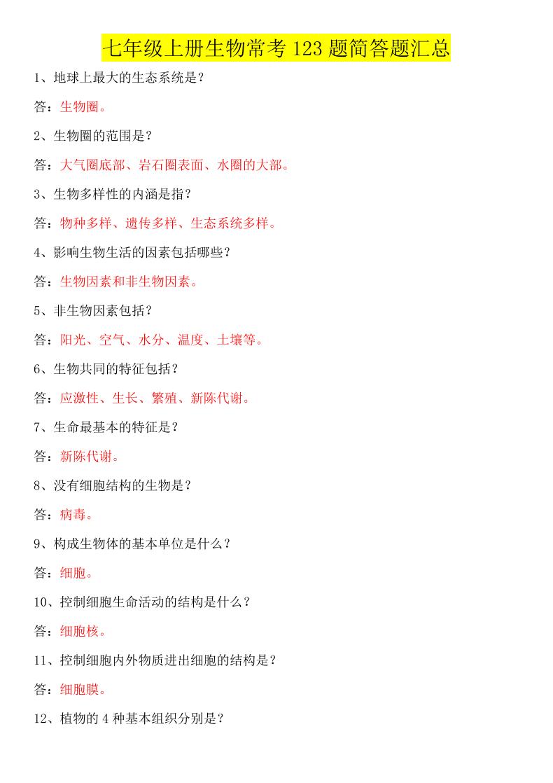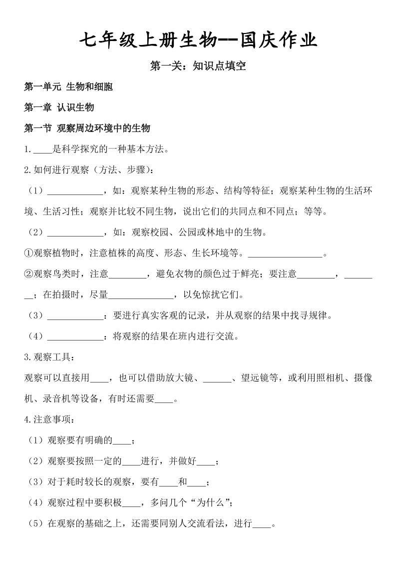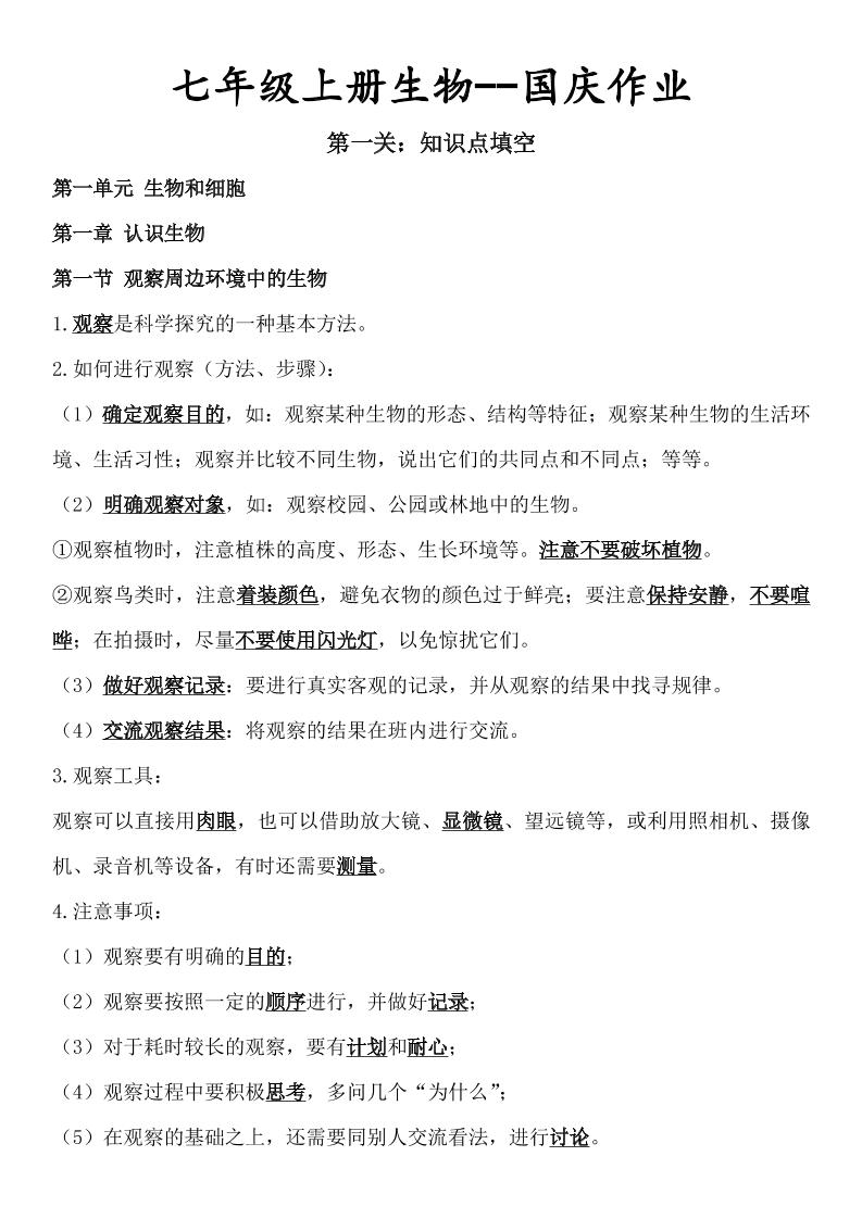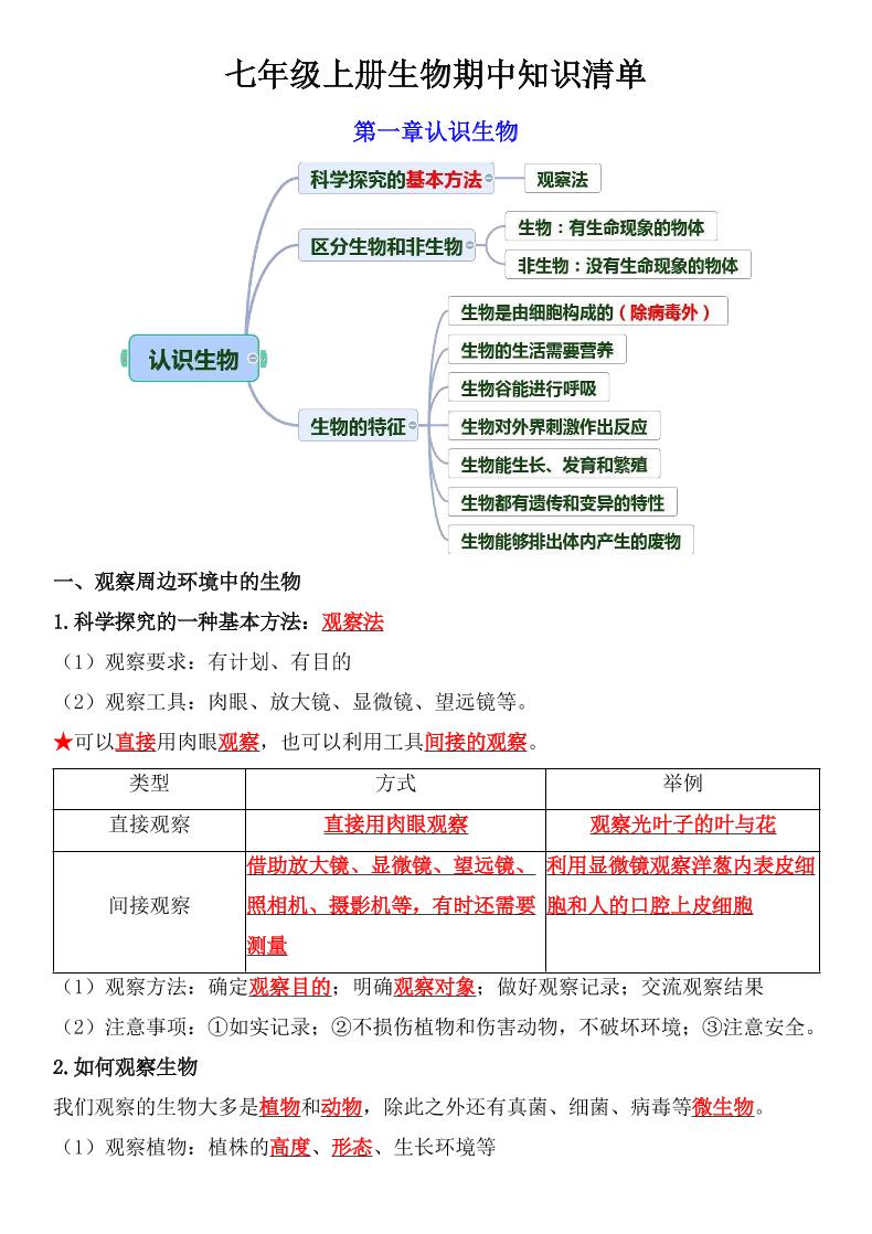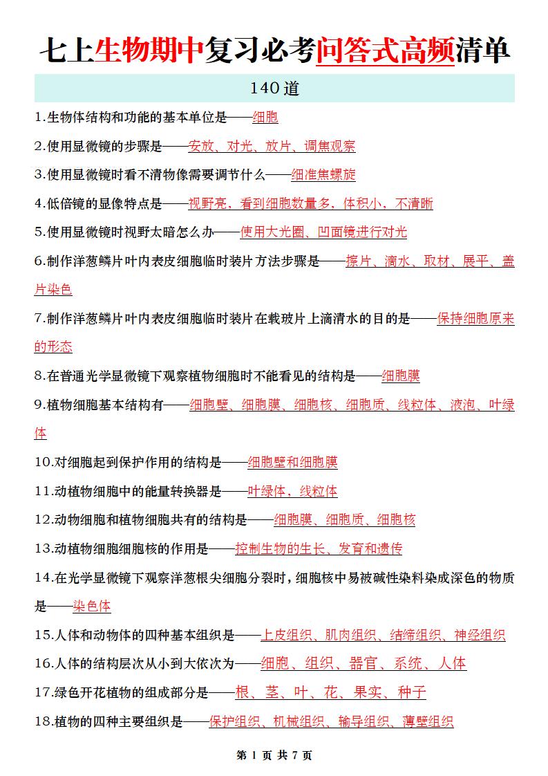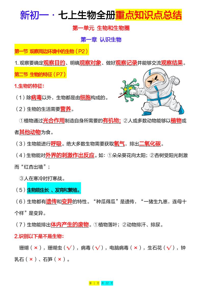 【暑假必背】25年秋七年级上册生物知识点总结(共25页)