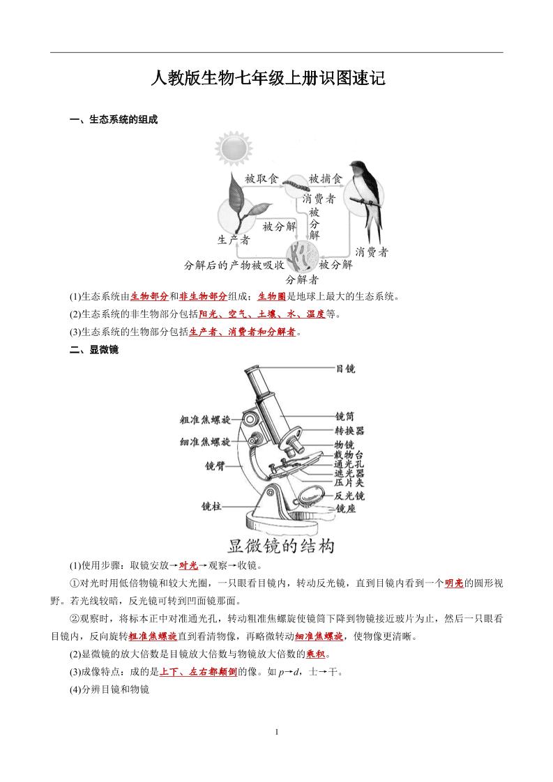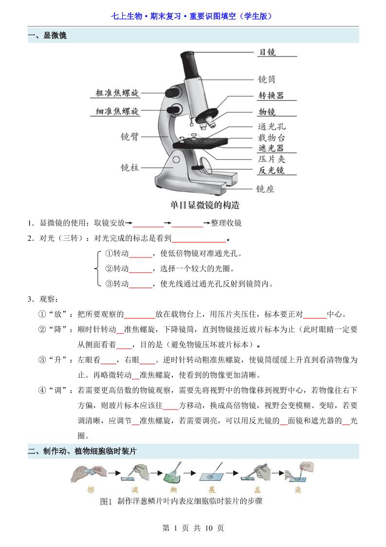 2025年七年级上册生物《期末复习重要识图填空》(附答案)