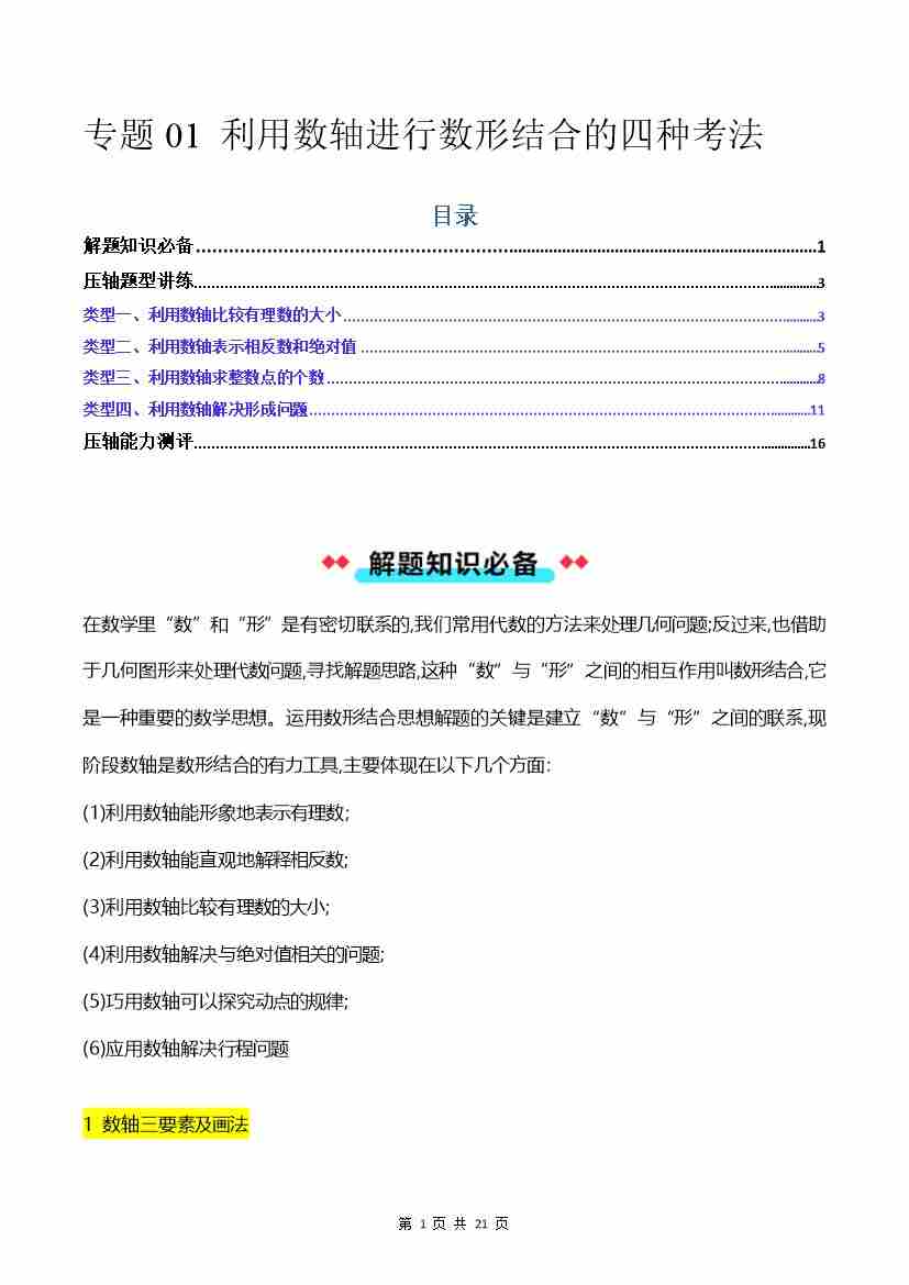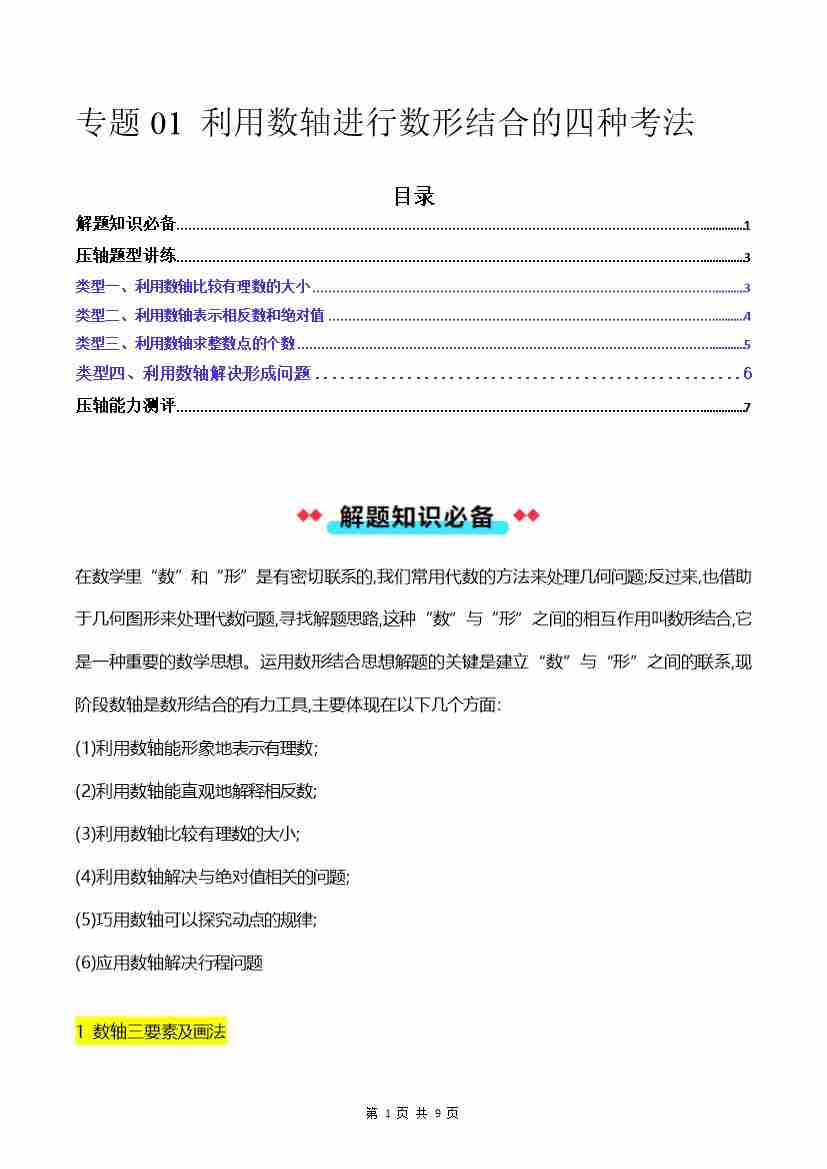 专题01 利用数轴进行数形结合的四种考法-解析版