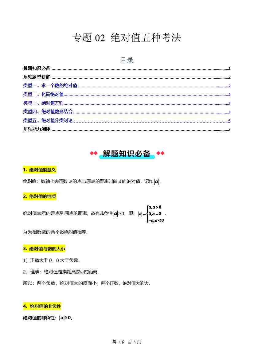 专题02 绝对值五种考法-解析版
