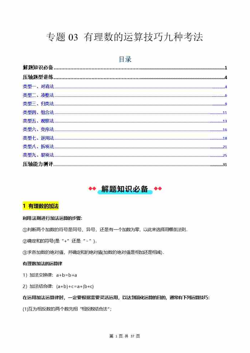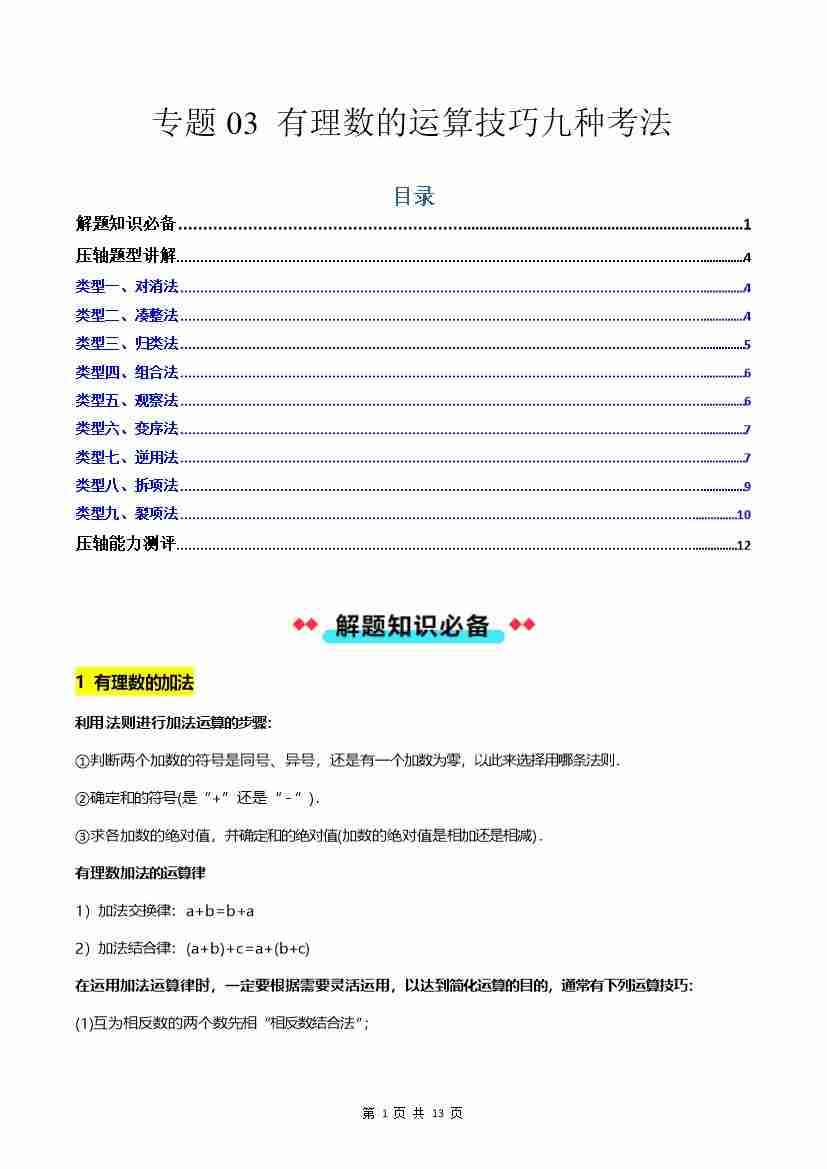 专题03 有理数的运算技巧九种考法-解析版