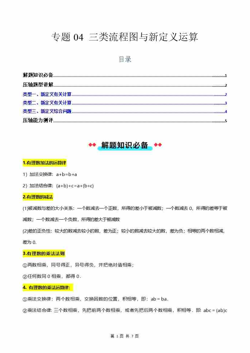 专题04 三类流程图与新定义运算-原卷版