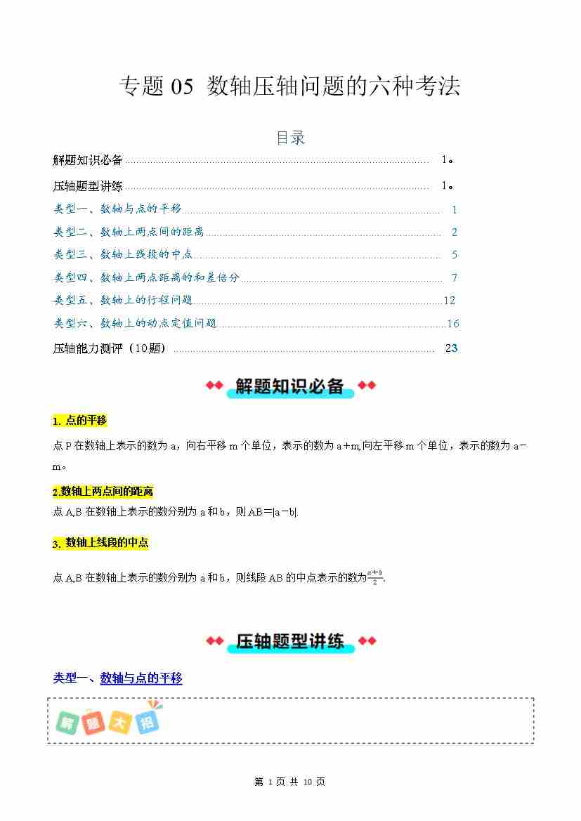 专题05 数轴压轴问题的六种考法-原卷版