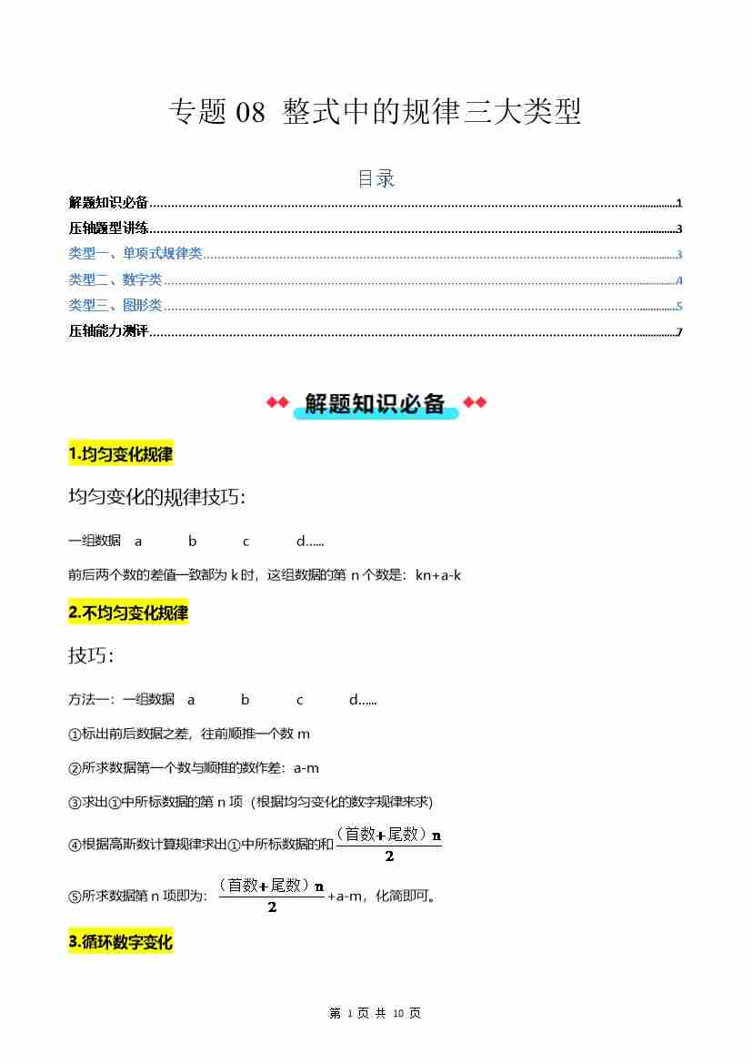 专题08 整式中的规律三大类型-原卷版