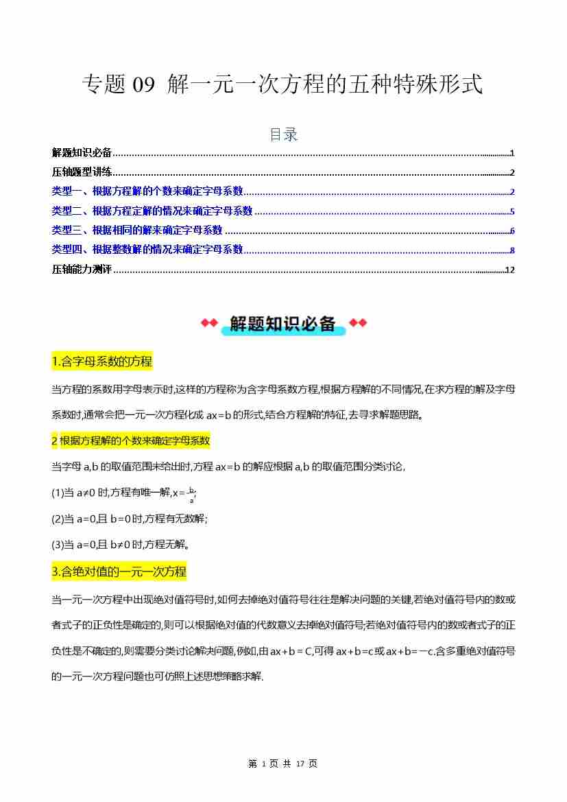 专题09 一元一次方程的五种特殊形式-原卷版