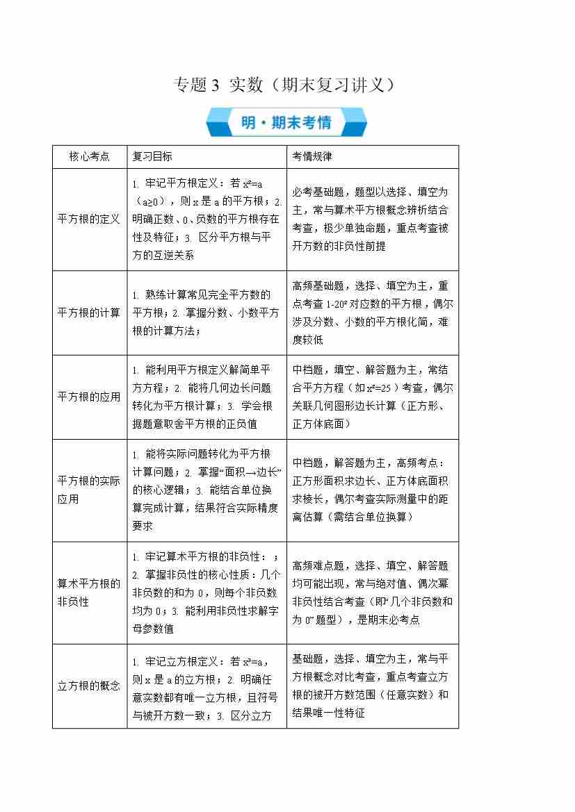 专题3实数(期末复习讲义)原卷版