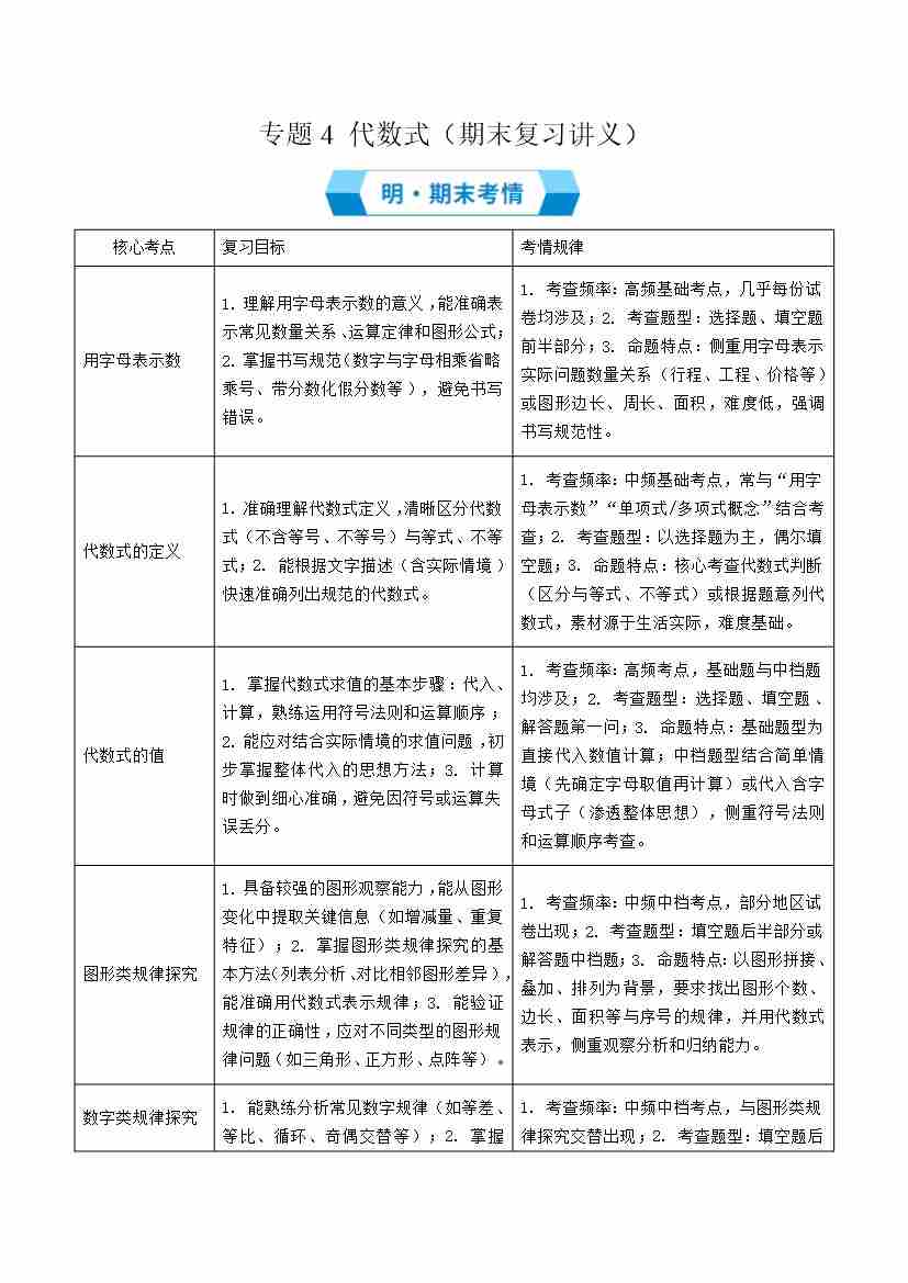 专题4 代数式(期末复习讲义)原卷版