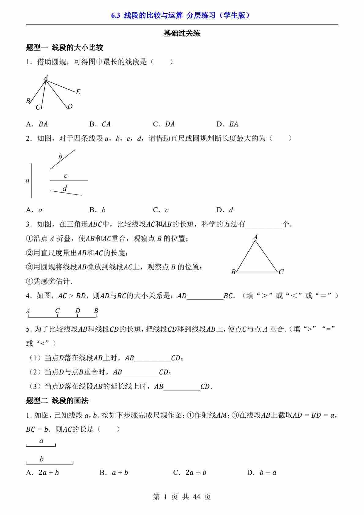 6.3 线段的比较与运算(分层练习)