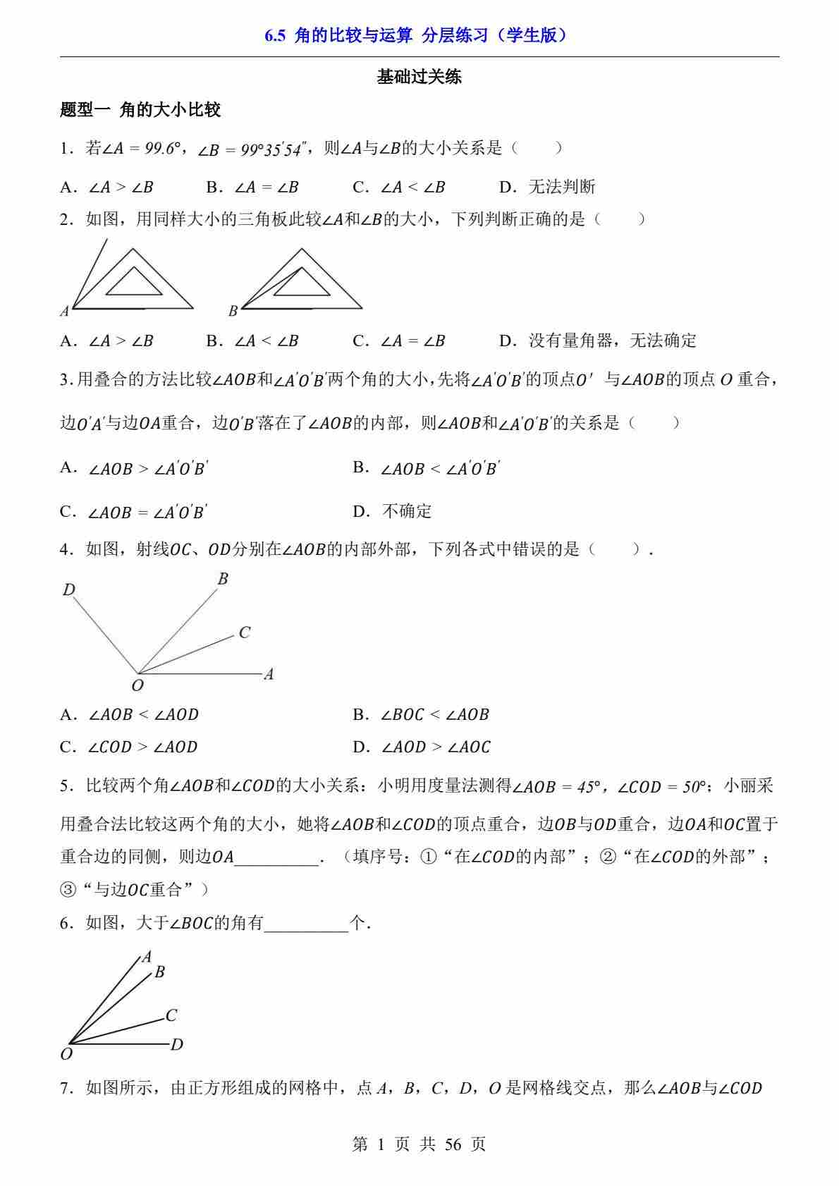 6.5 角的比较与运算(分层练习)