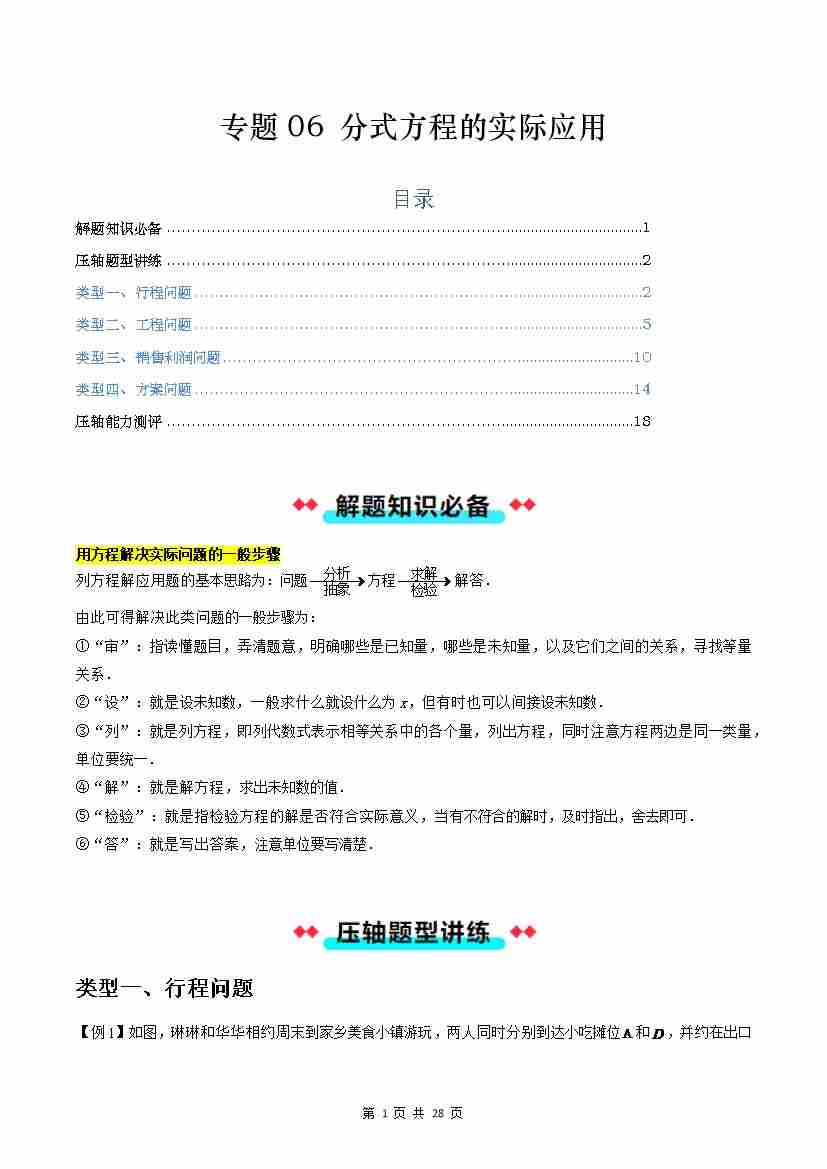 【沪教】专题06:分式方程的实际应用(四大类型)(解析版)