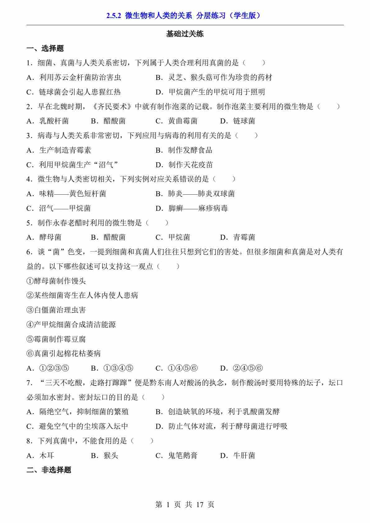 2.5.1 真菌、细菌和病毒 第2课时(分层练习)
