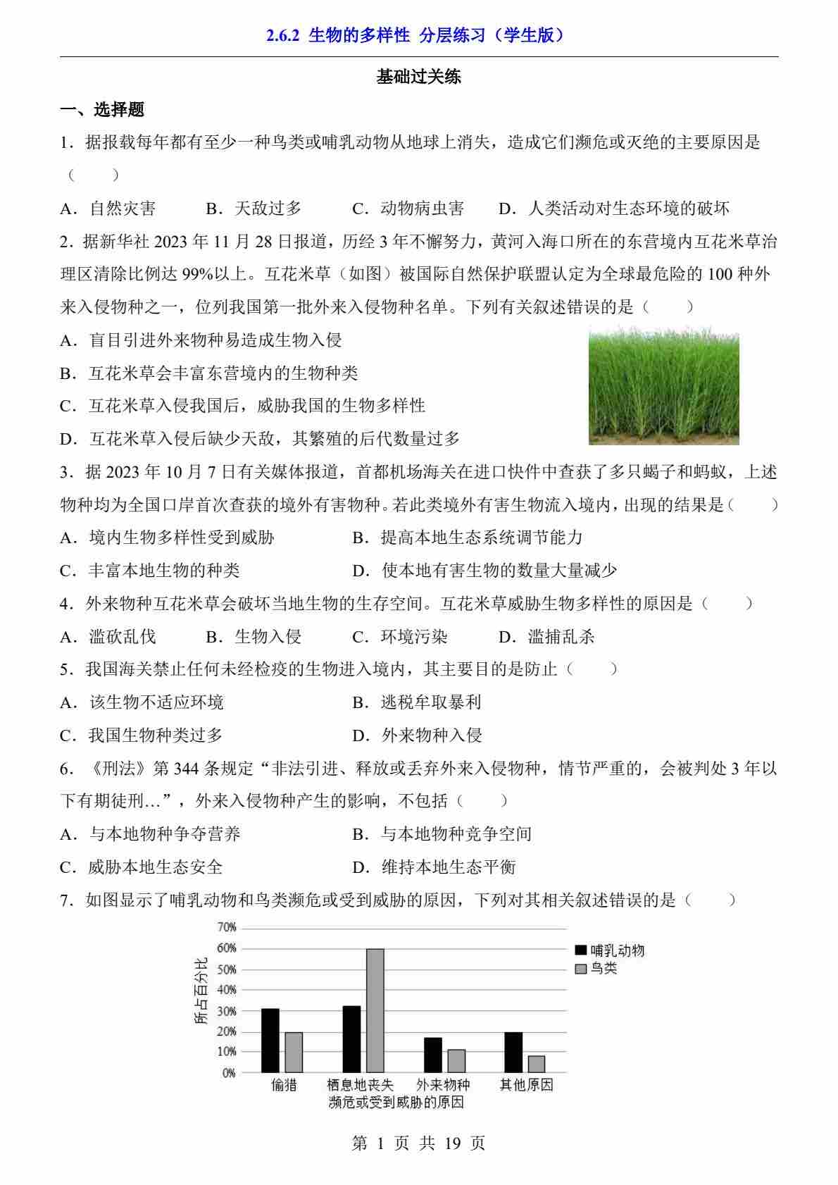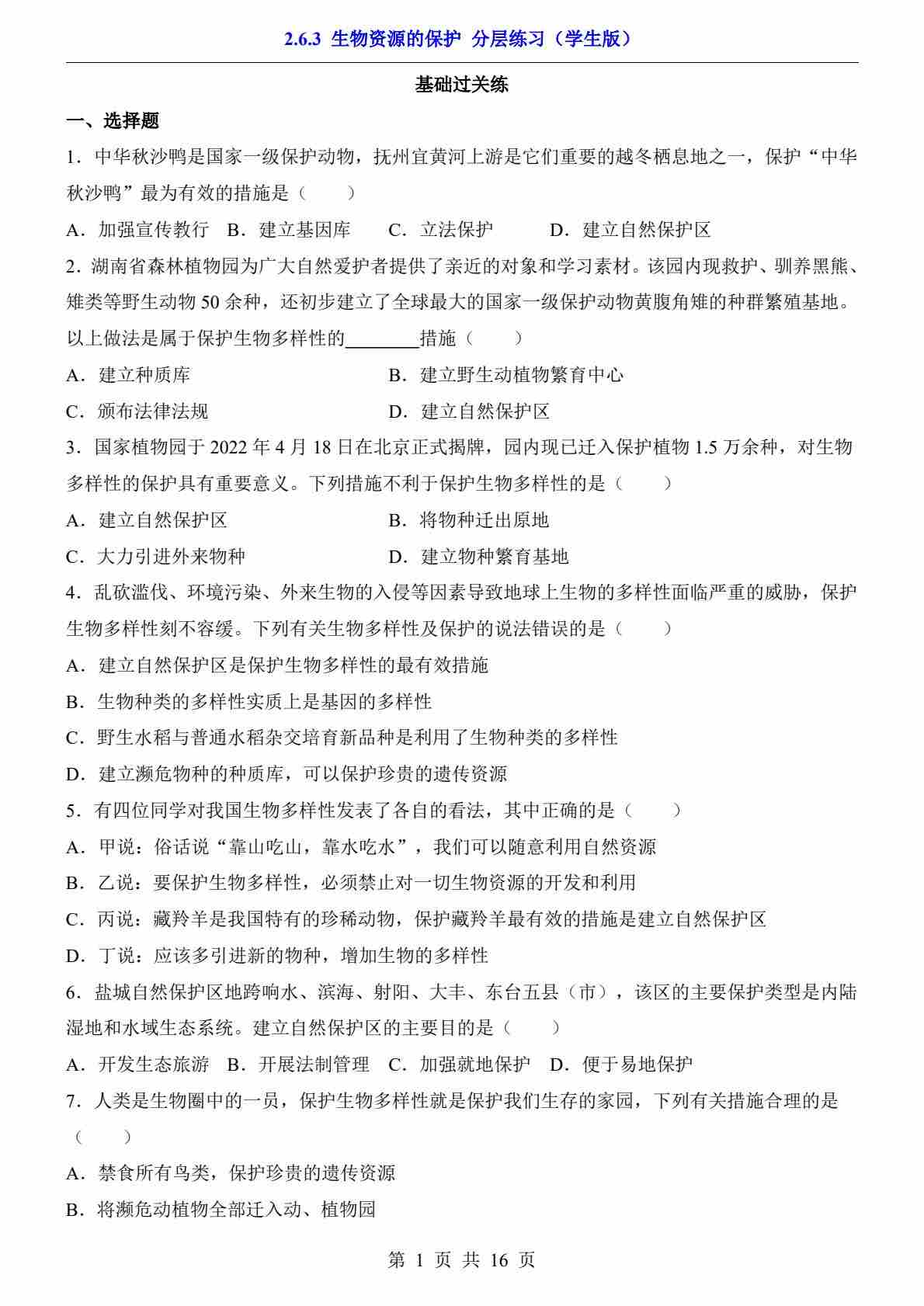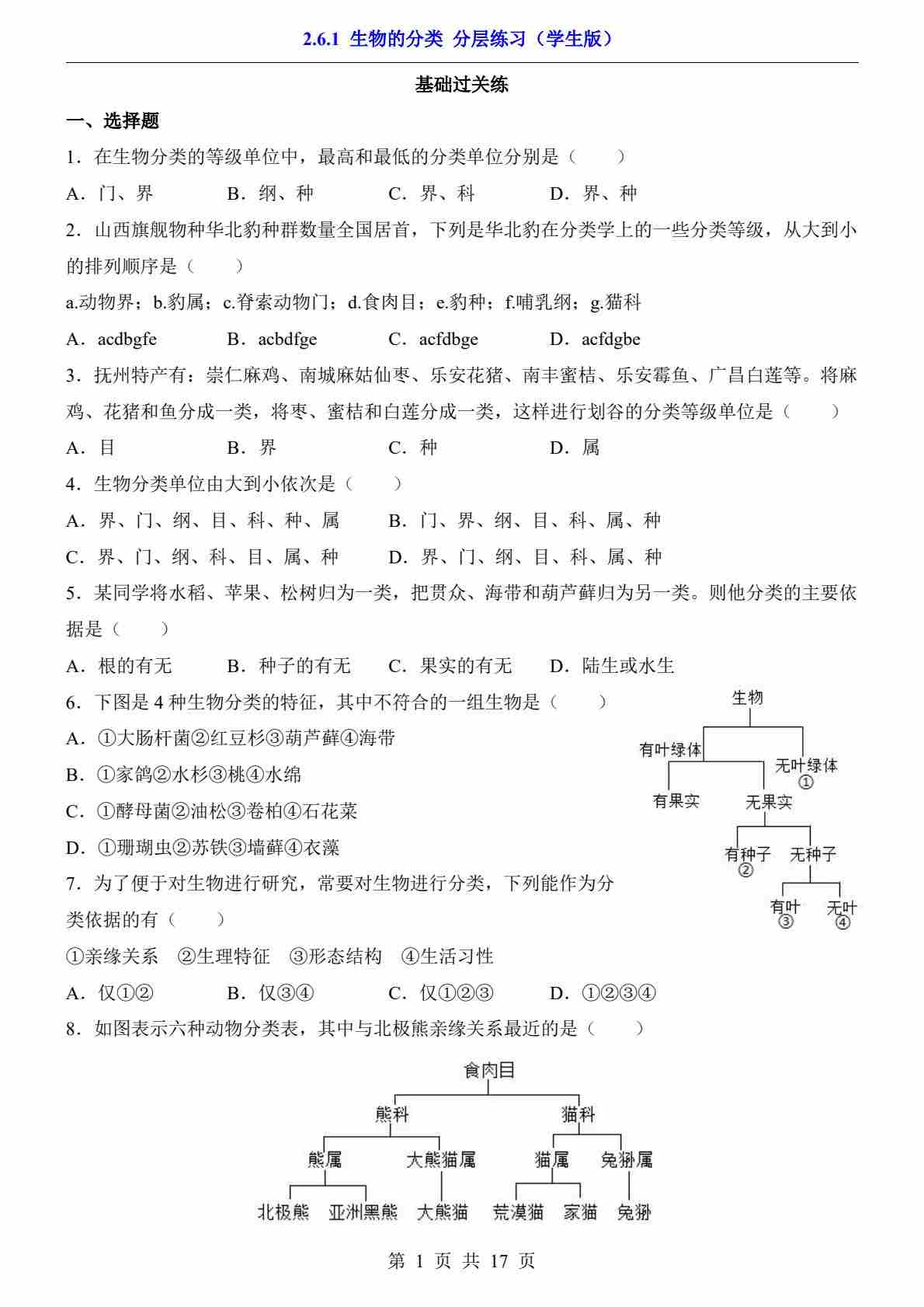 2.3.1 藻类和苔藓、蕨类植物(分层练习)