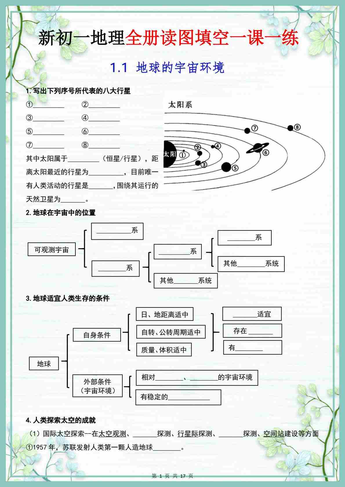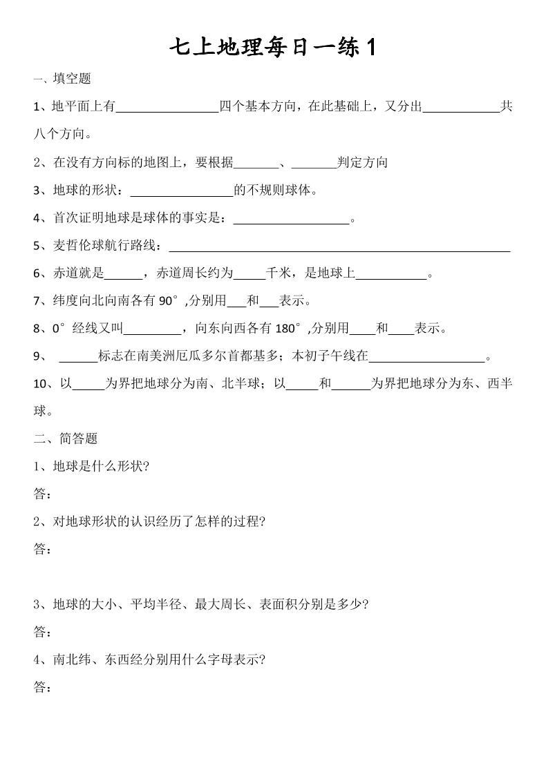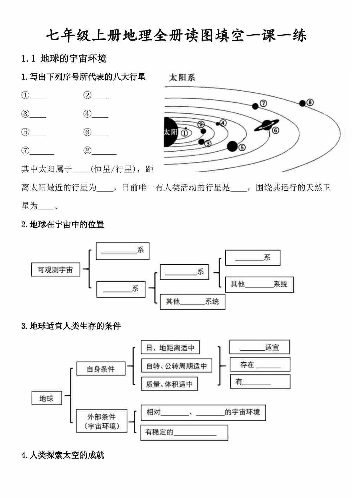 2025新初一七年级上册地理《地图填空全册一课一练》(1)