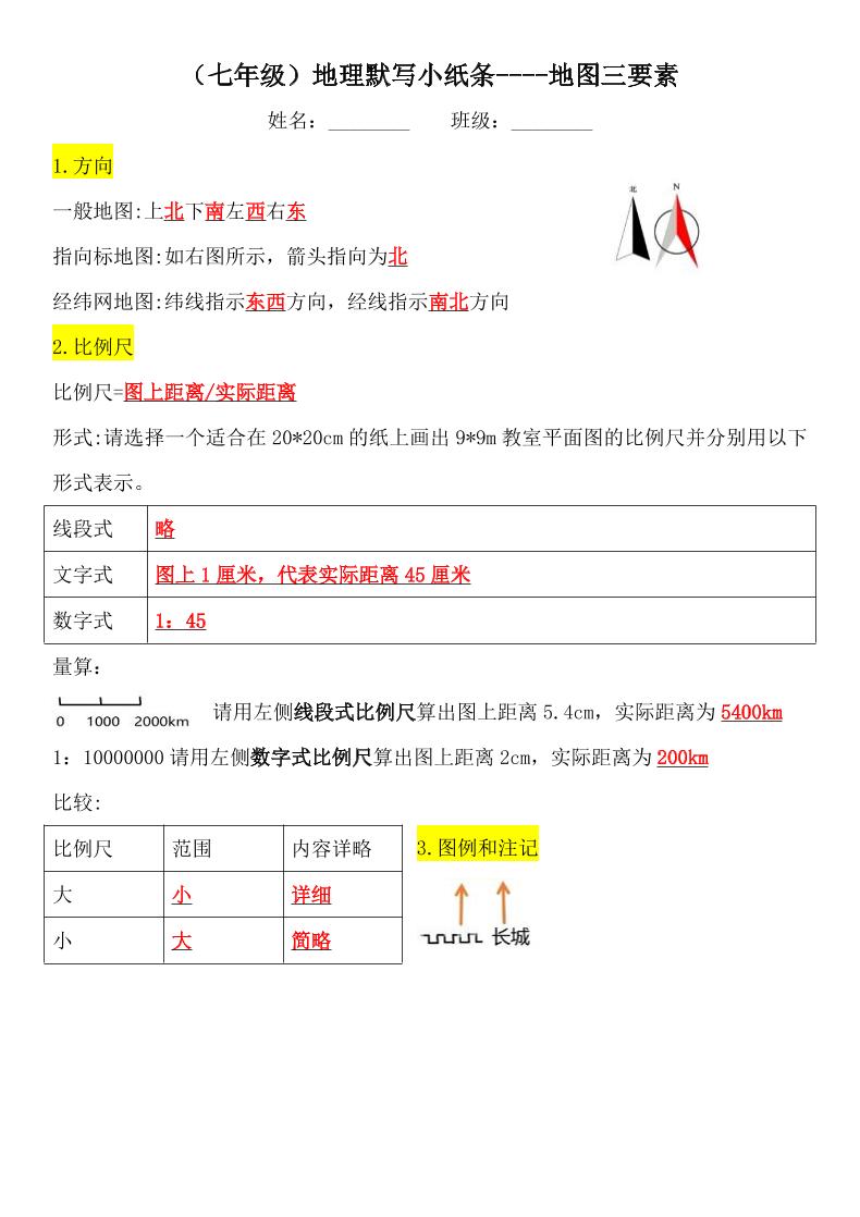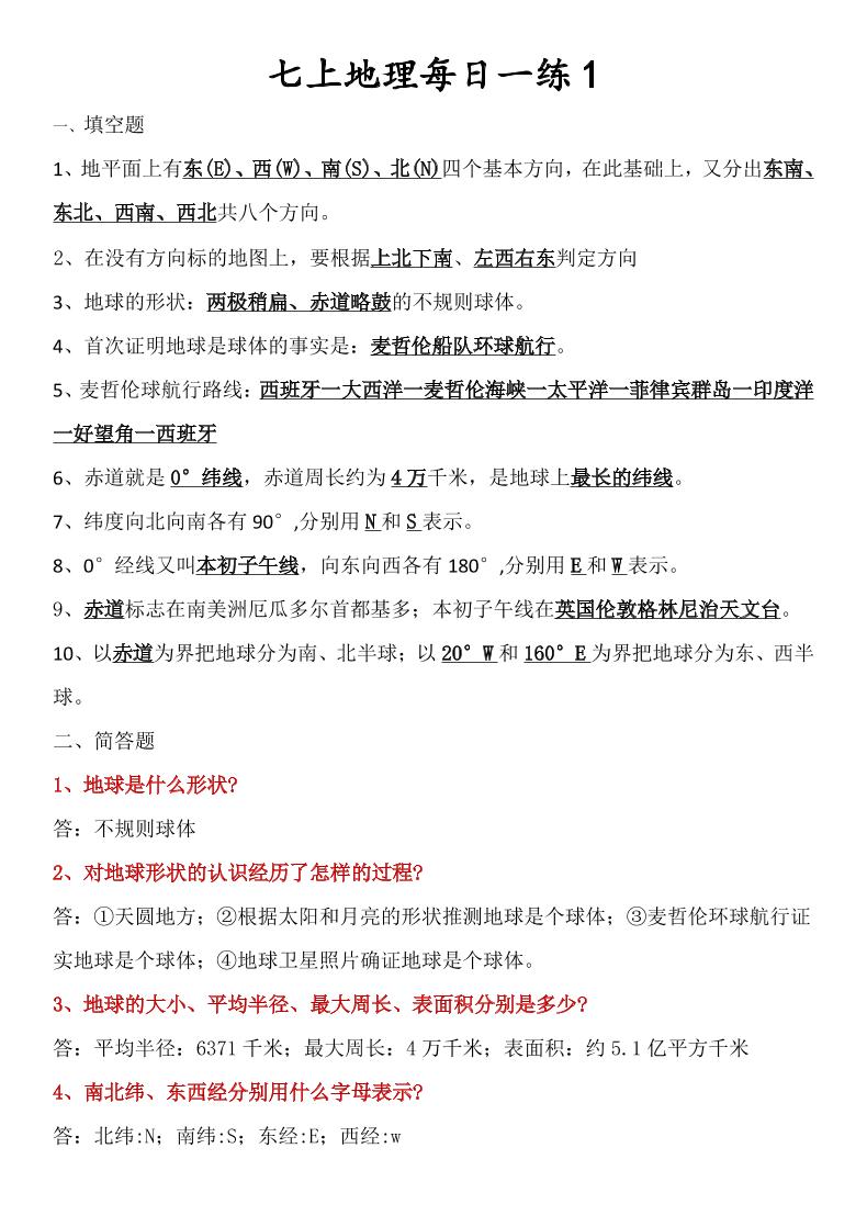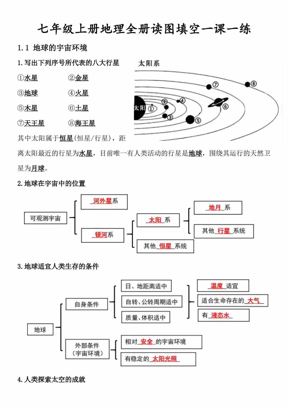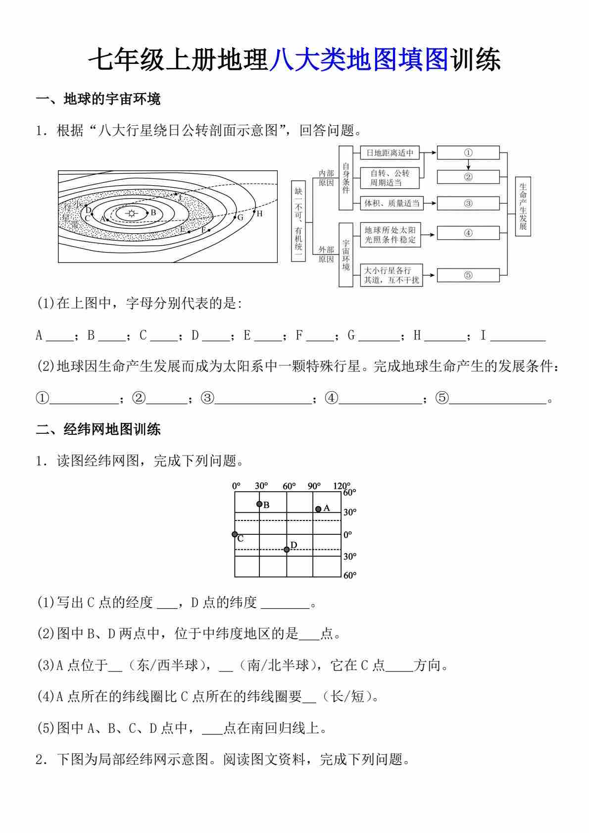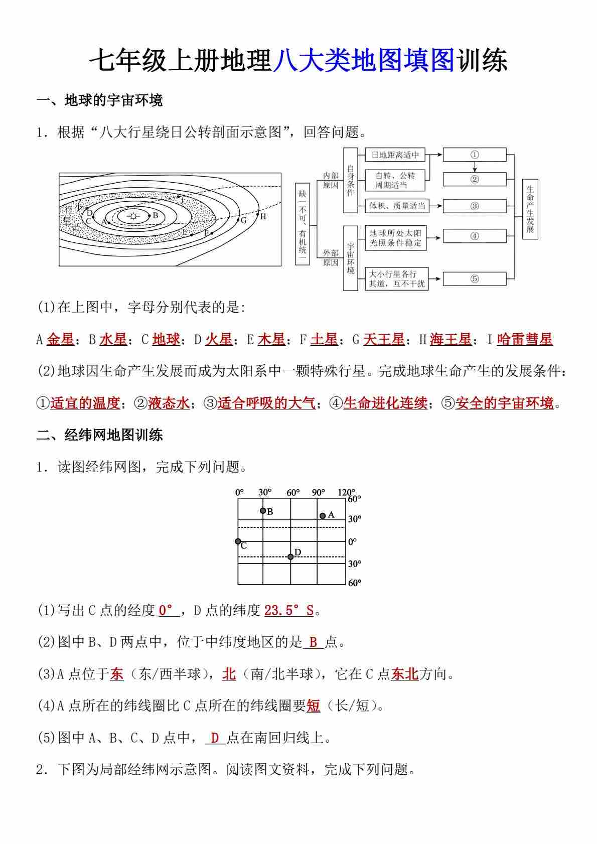 七年级上册地理地图填图训练答案(八大类地图训练)