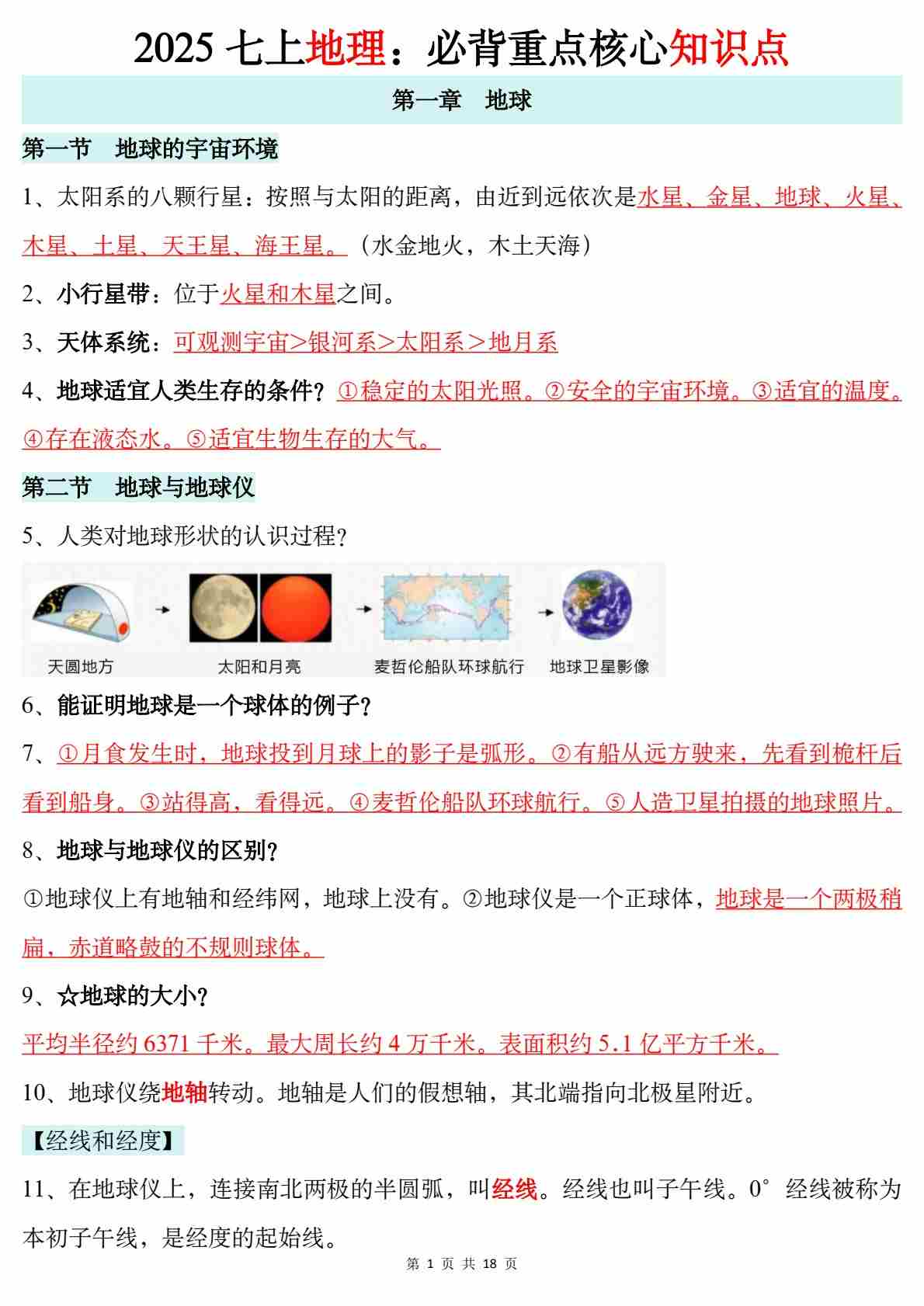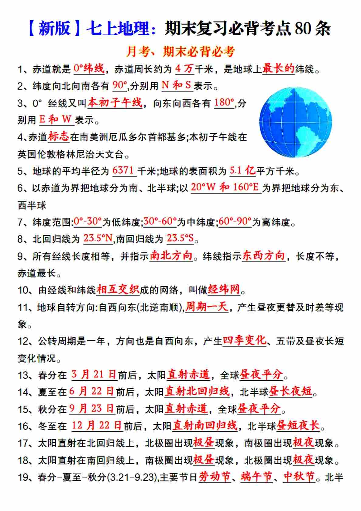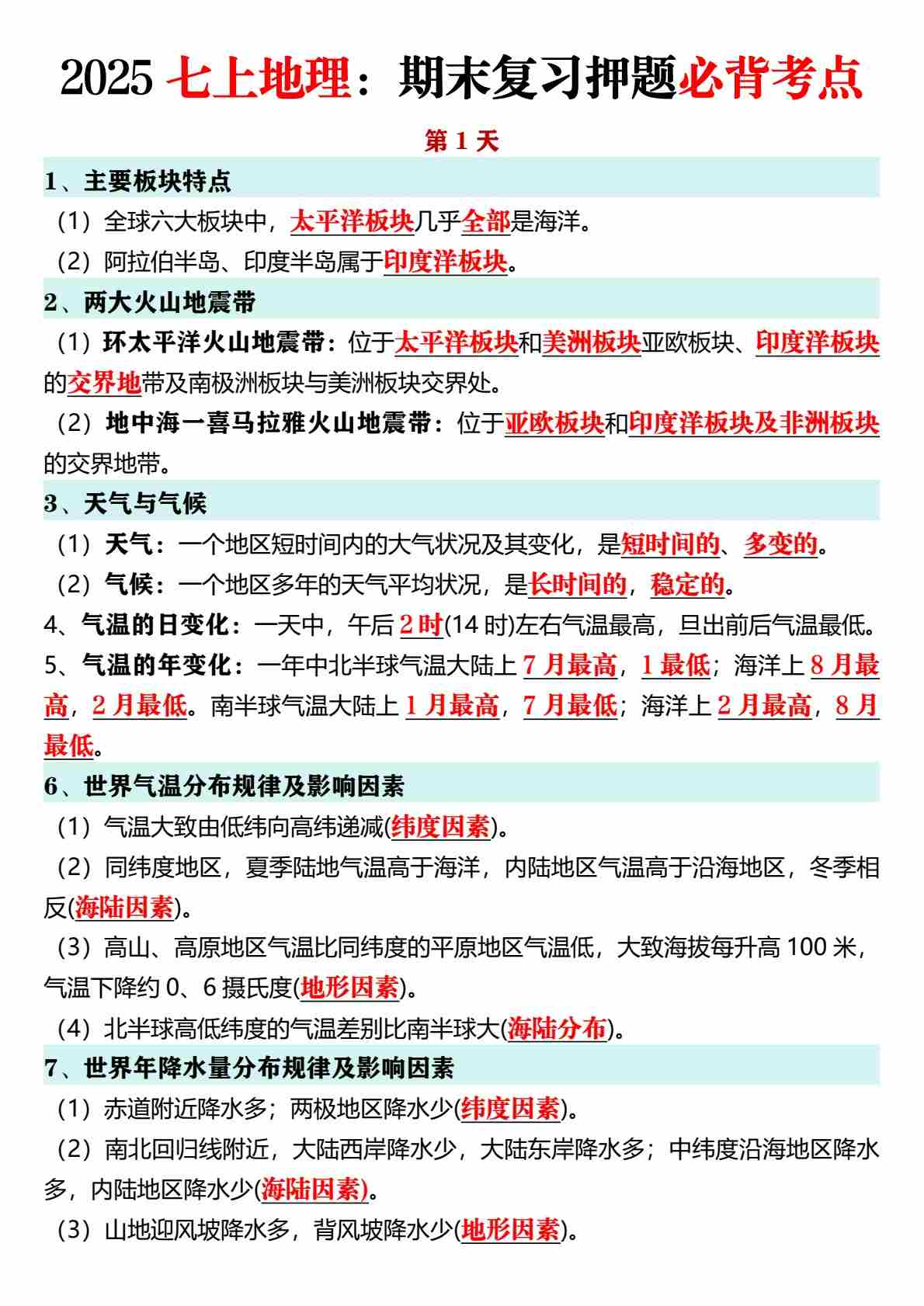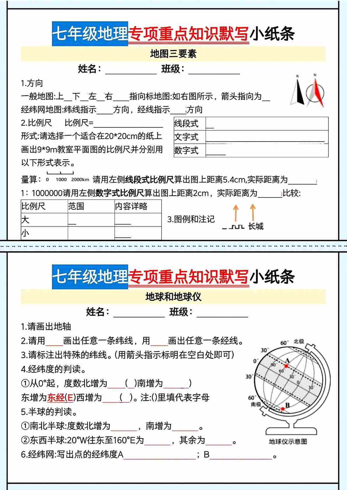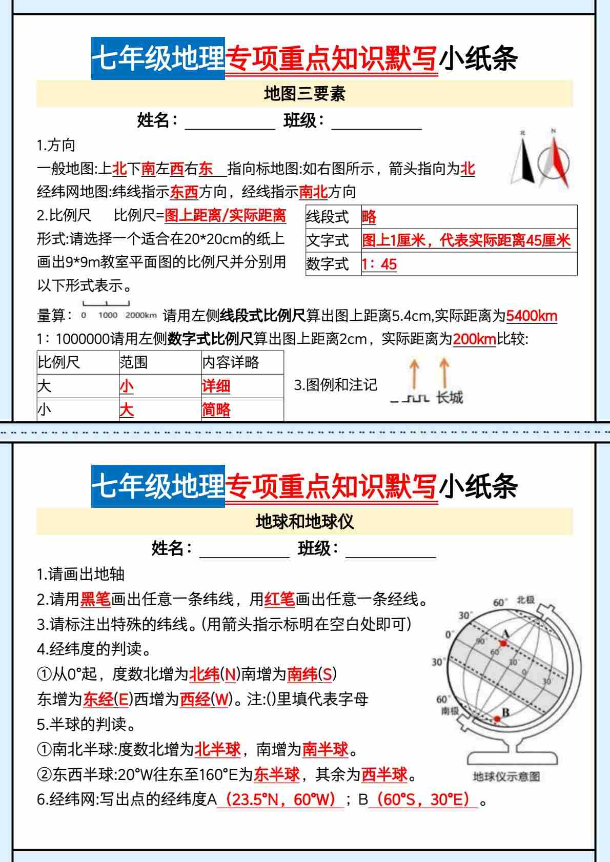 七年级上册地理地图填图训练答案(八大类地图训练)
