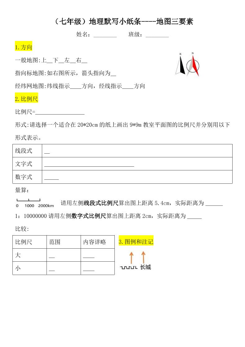 七年级上册地理地图填图训练空白(八大类地图训练)