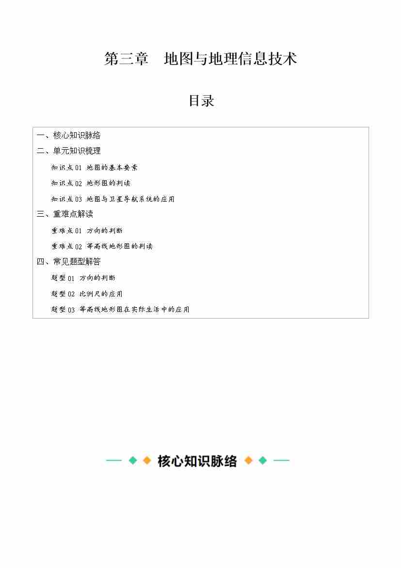 第三章 地图与地理信息技术【速记清单】(答案版)-七年级地理上册(商务星球版2024)
