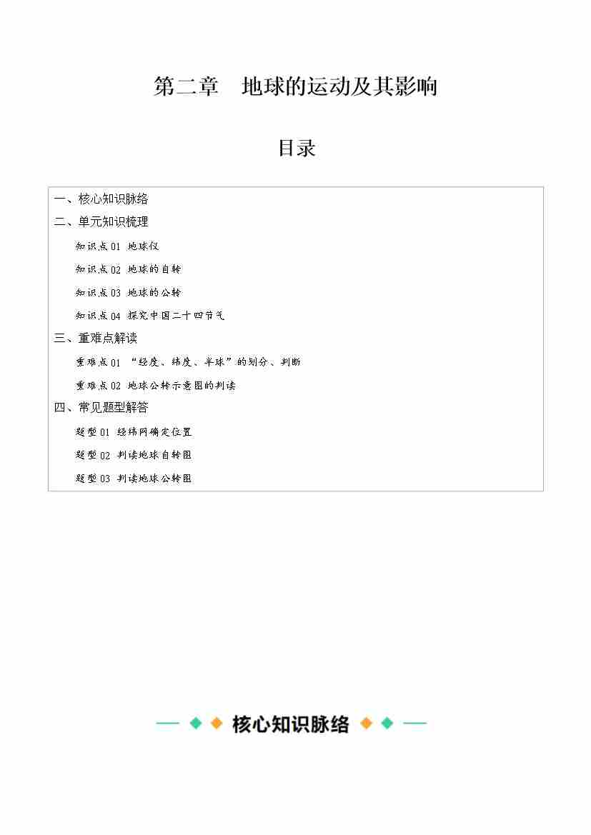 第二章 地球的运动及其影响【速记清单】(答案版)-七年级地理上册(商务星球版2024)
