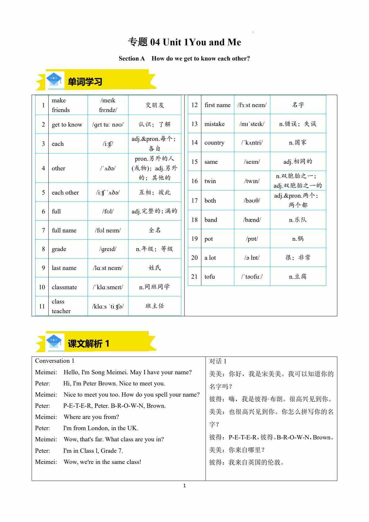 专题07 Unit 2 We're Family! Section B (原卷版)