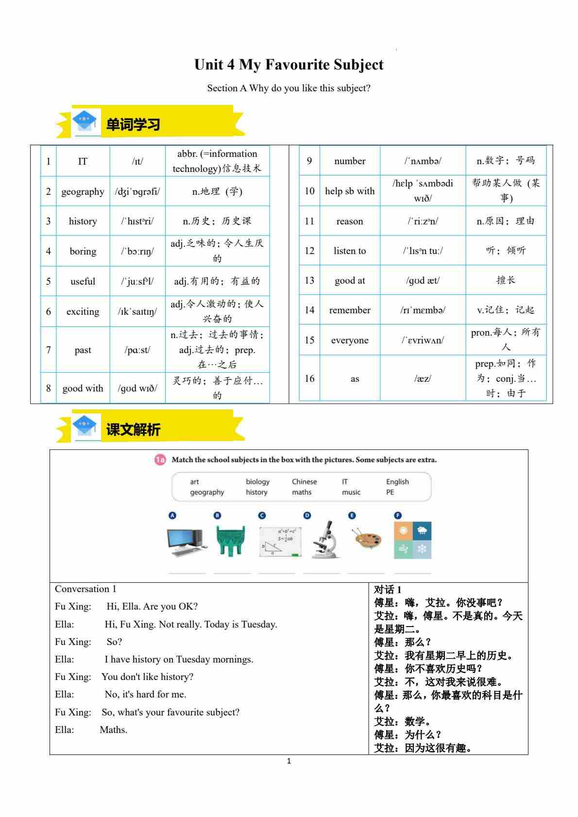 专题10 Unit 4 My Favourite Subject Section A(解析版)