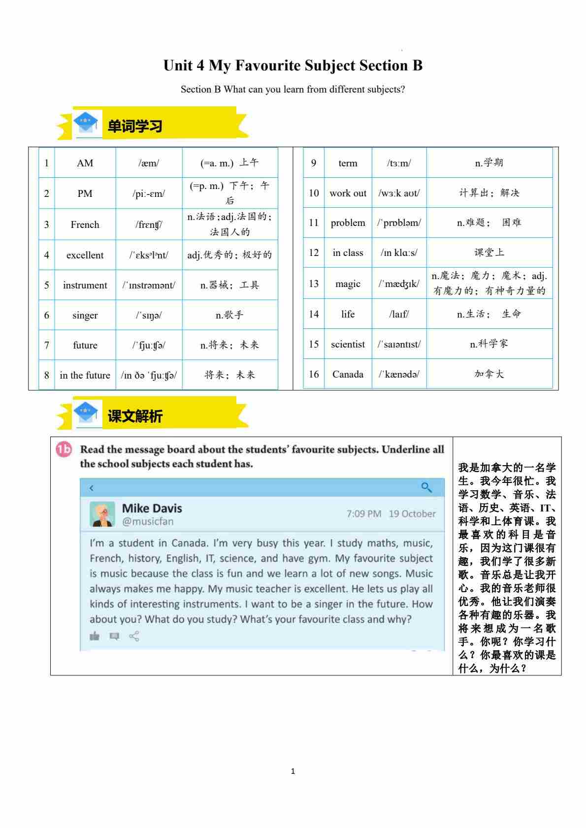专题11 Unit 4 My Favourite Subject Section B(解析版)