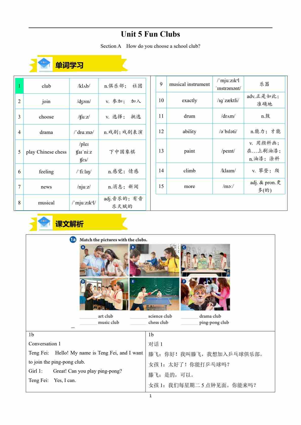 专题12 Unit 5 Fun Clubs Section A (解析版)
