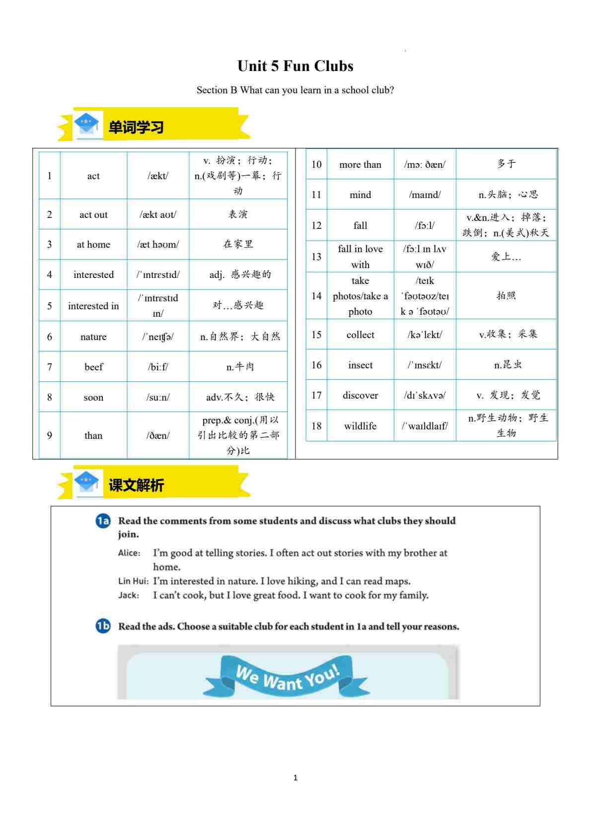 专题13 Unit 5 Fun Clubs Section B (解析版)
