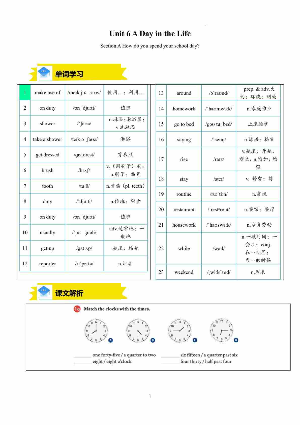 专题14 Unit 6 A Day in the Life Section A (解析版)