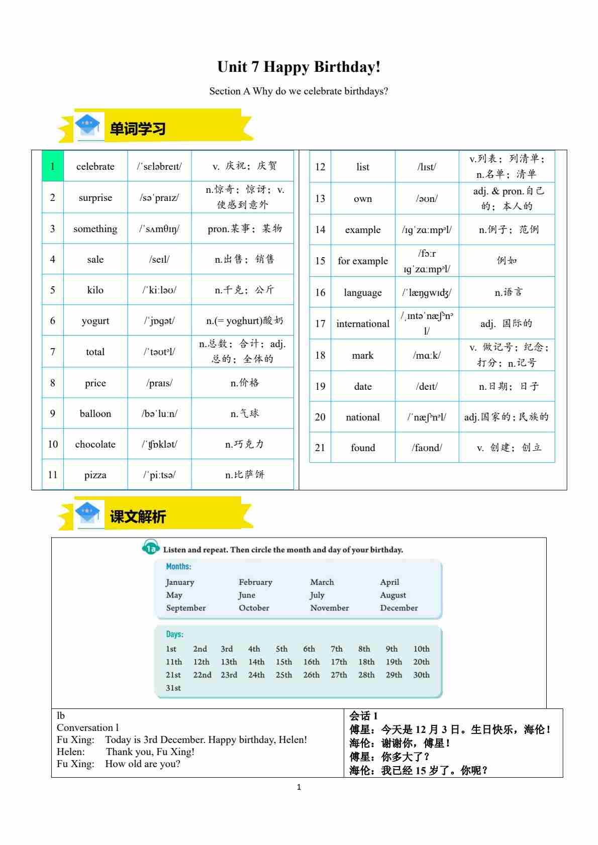 专题16 Unit 7 Happy Birthday! Section A (解析版)