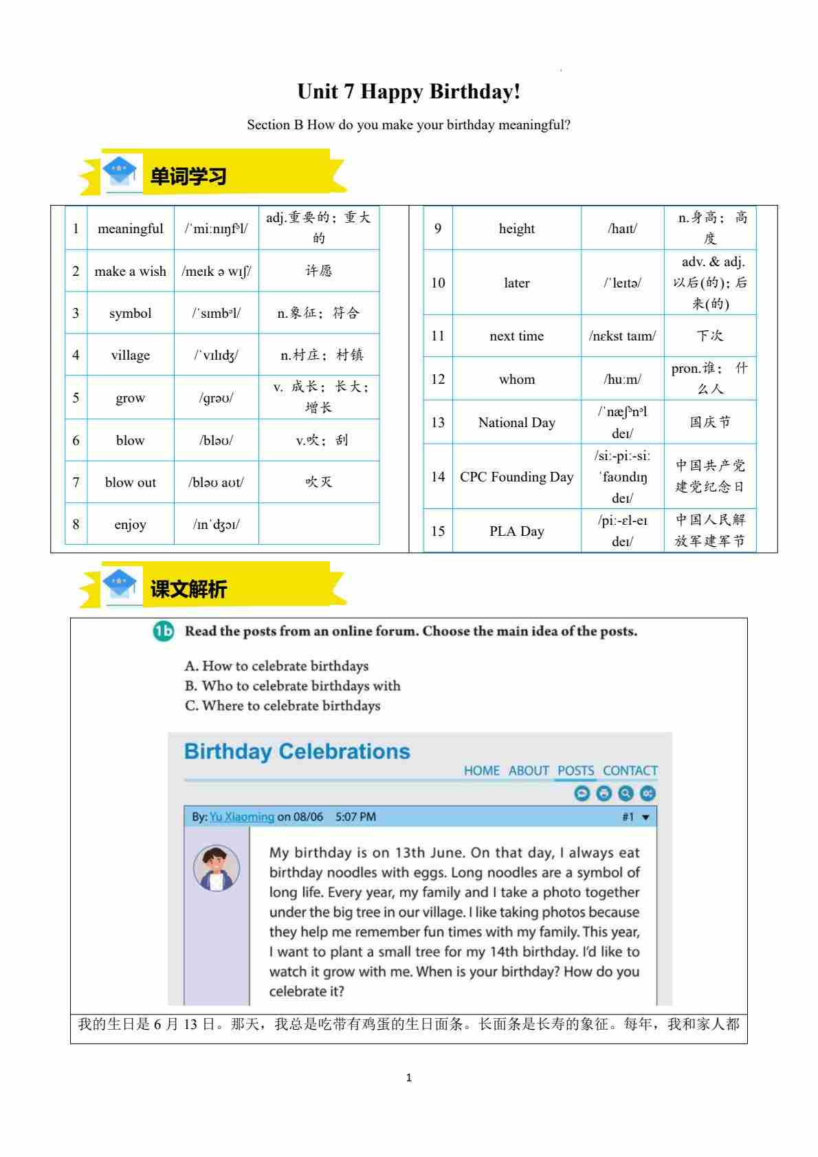 专题17 Unit 7 Happy Birthday! Section B (解析版)