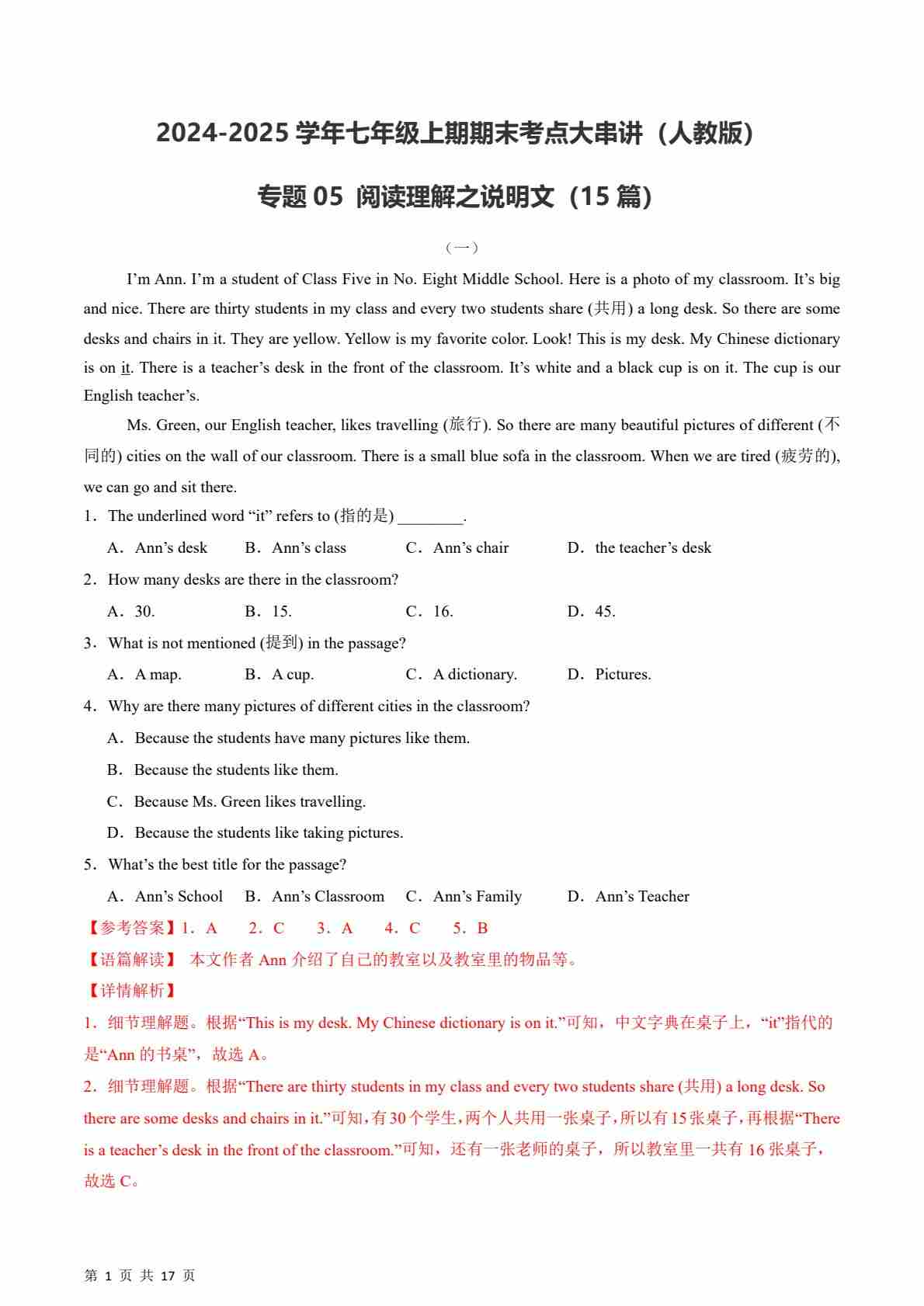 专题05 阅读理解之说明文 【期末必刷15篇】(解析版)
